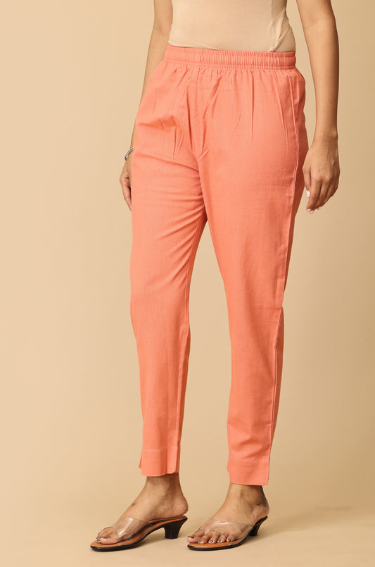 Peach Cotton Trouser Fit with Drawstring Cigarette Pant