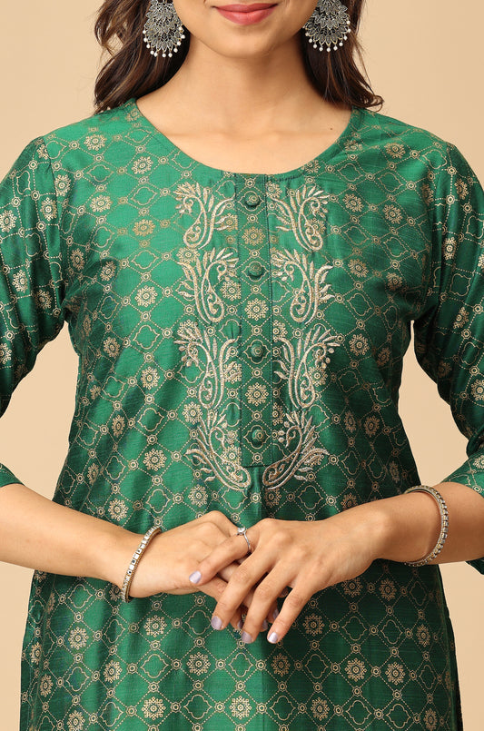Green Gold Print with Zari Embroidery Kurti