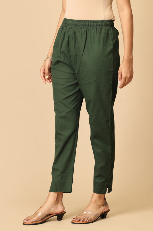 Green Cotton Trouser Fit with Drawstring Cigarette Pant