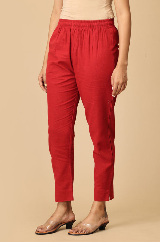 Maroon Cotton Trouser Fit with Drawstring Cigarette Pant