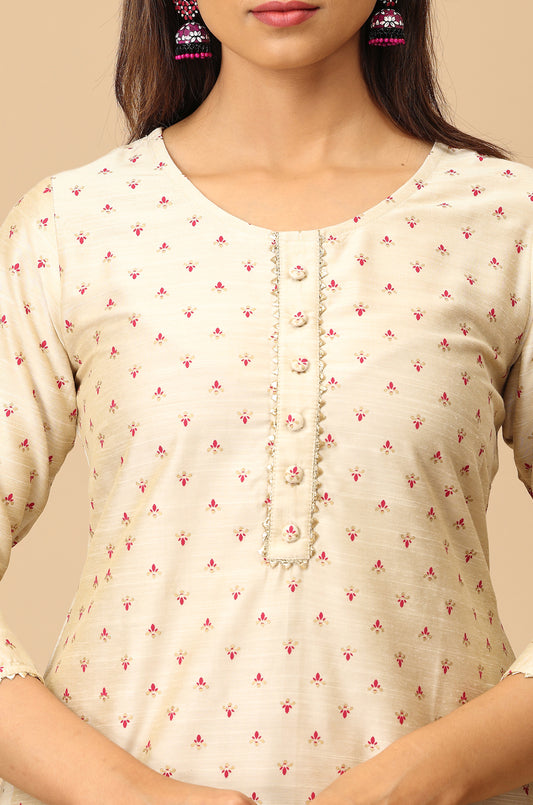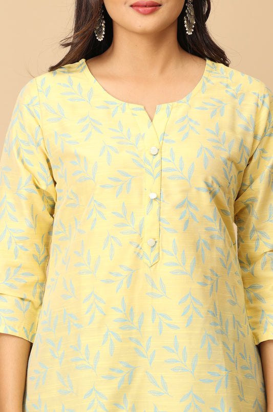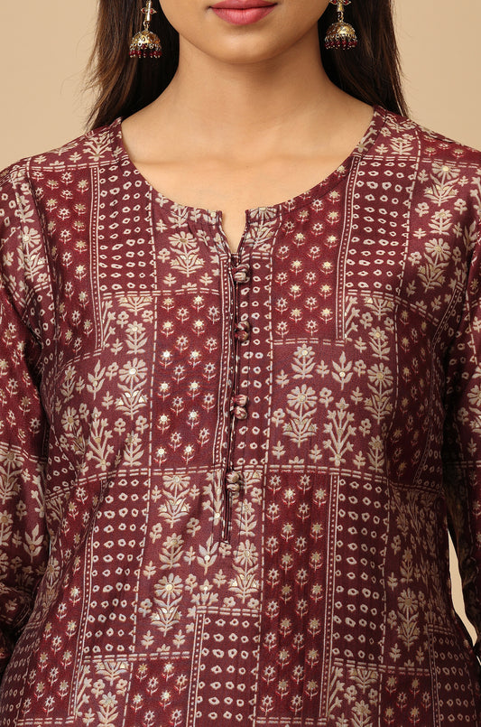 Wine Modal Printed Straight Kurti Set - 2 Pcs