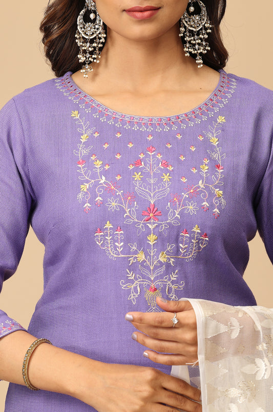 Lilac Matty Straight Embroidery Kurti