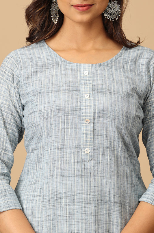 Steel Blue Khadi All Over Embroidery Kurti
