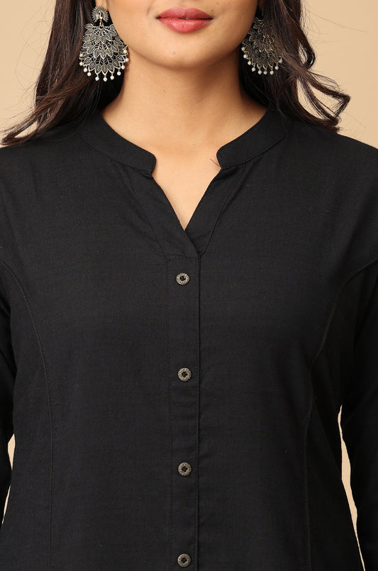 Black Rayon Slub Solid Princess Cut Kurti