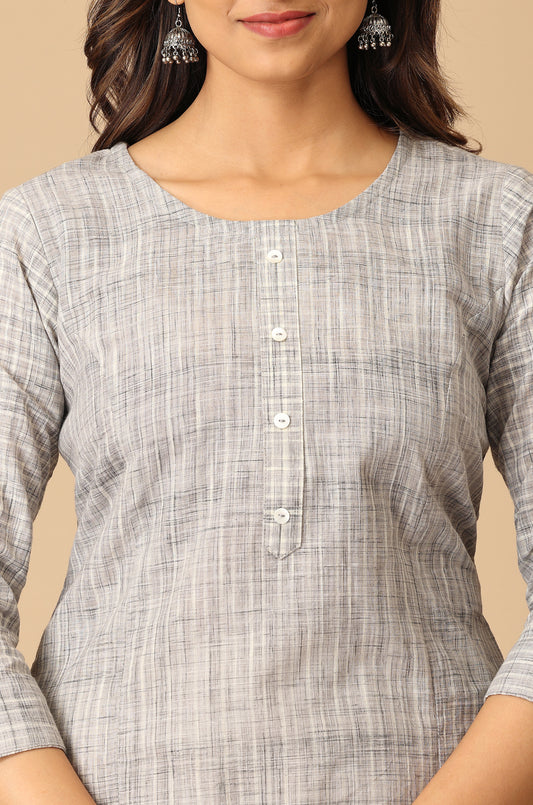 Grey Cotton Slub Patch Work Kurti