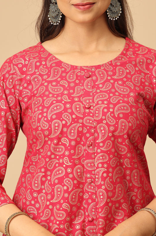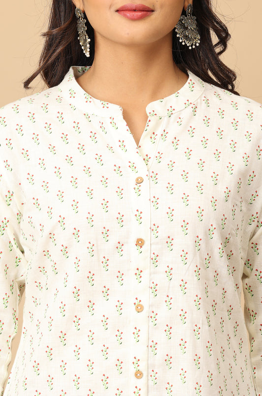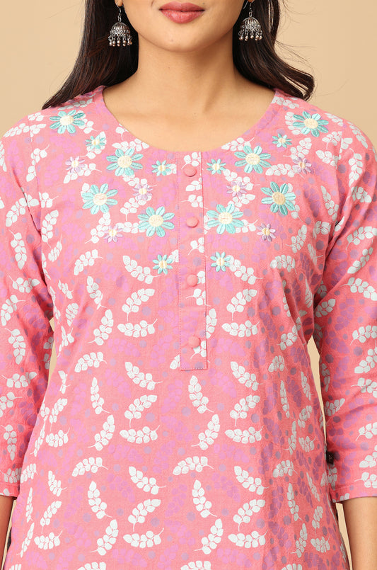 Green Cotton Dobby Bell Sleeve Straight Kurti
