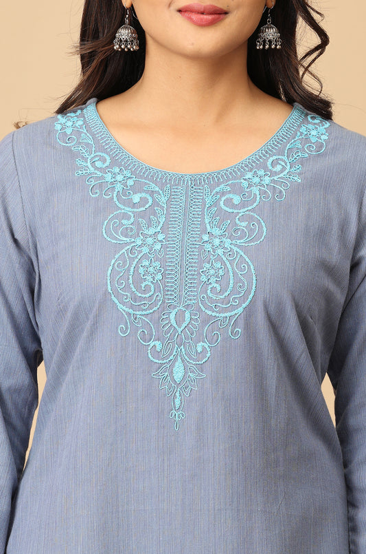 Lemon Cotton Dobby Bell Sleeve Straight Kurti