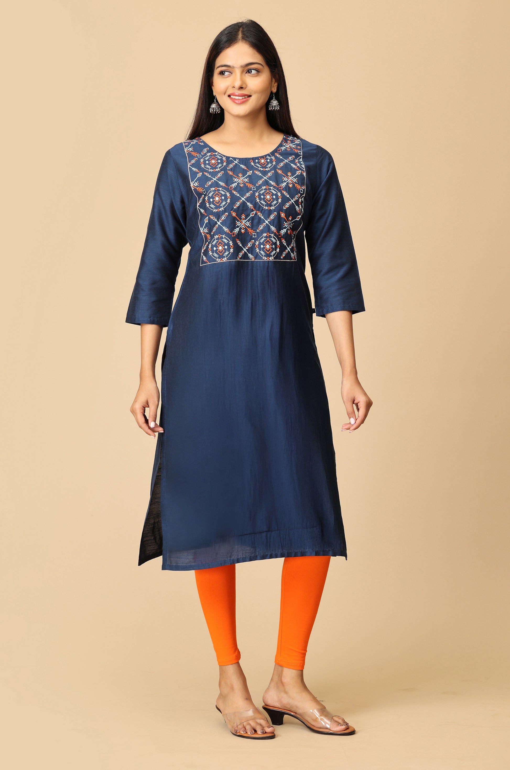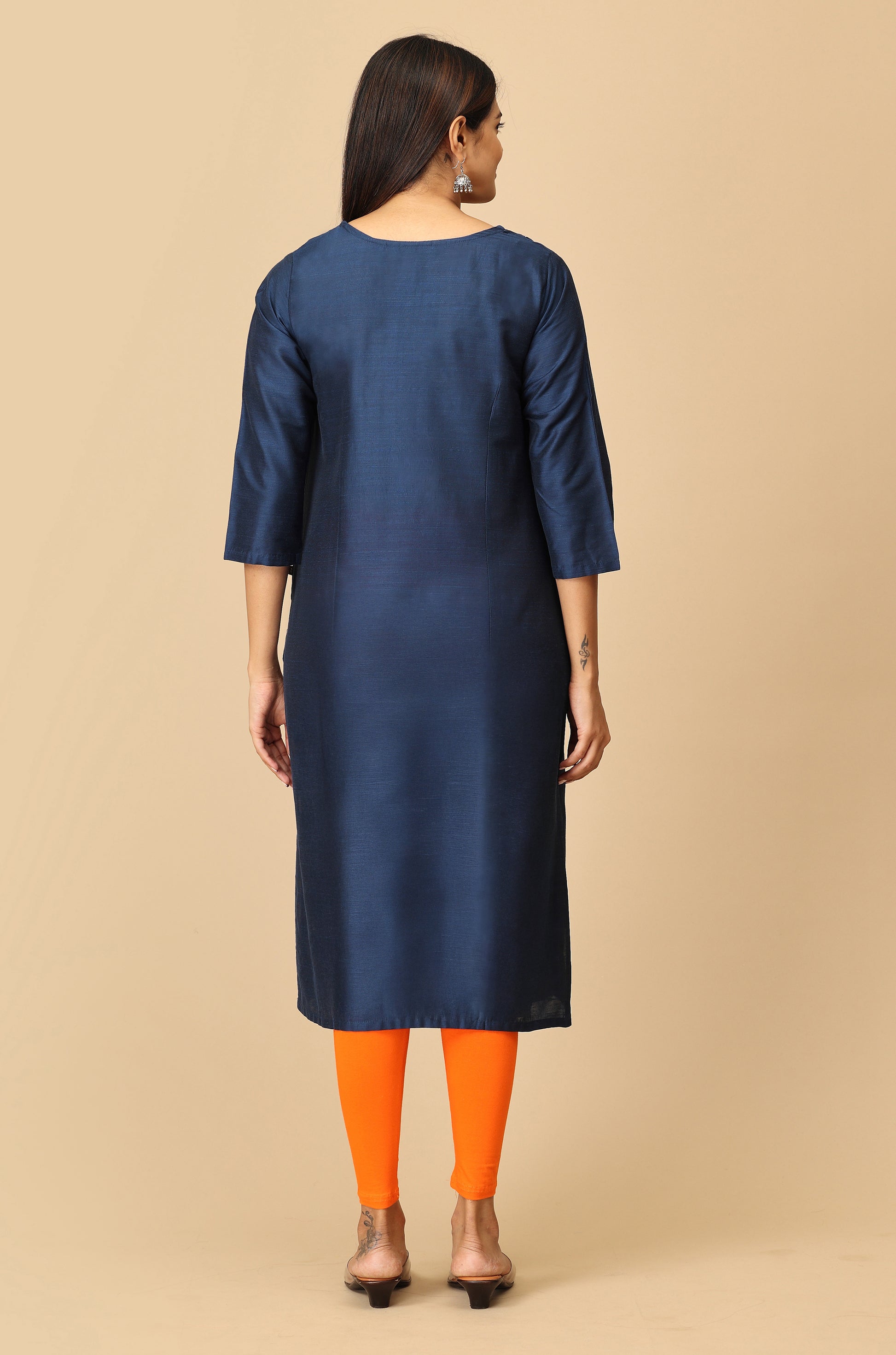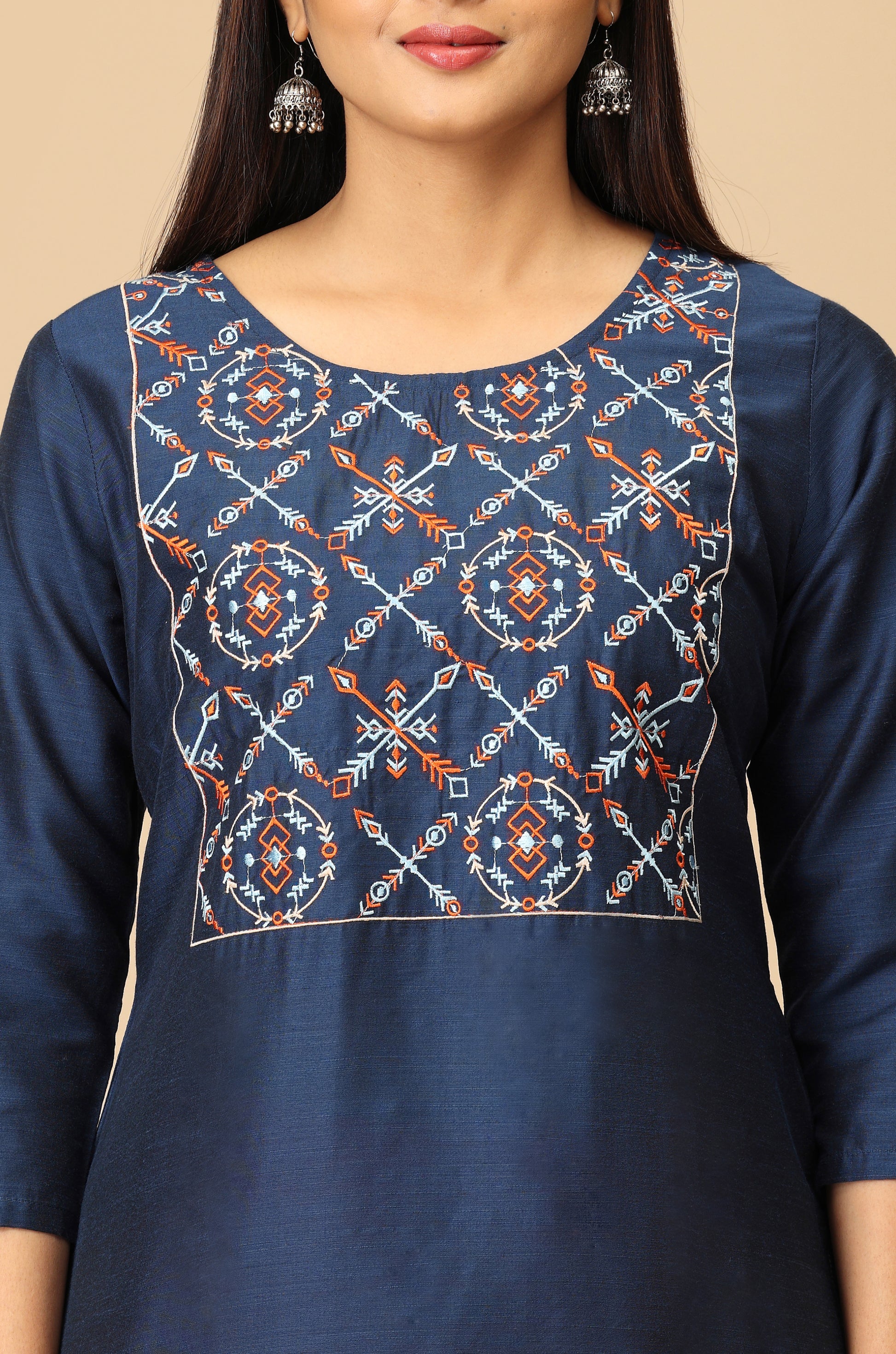 Navy Blue Multi-Color Embroidery Kurti