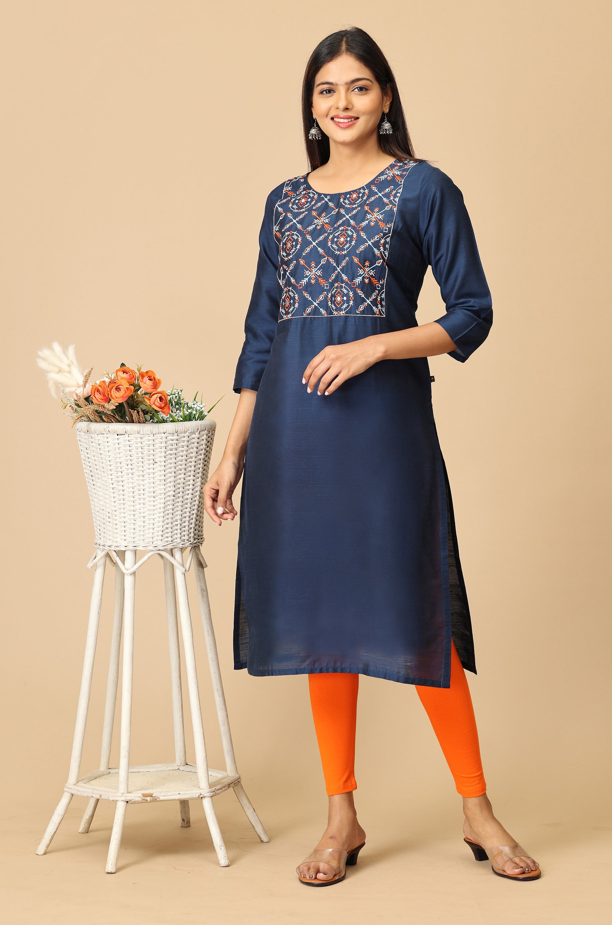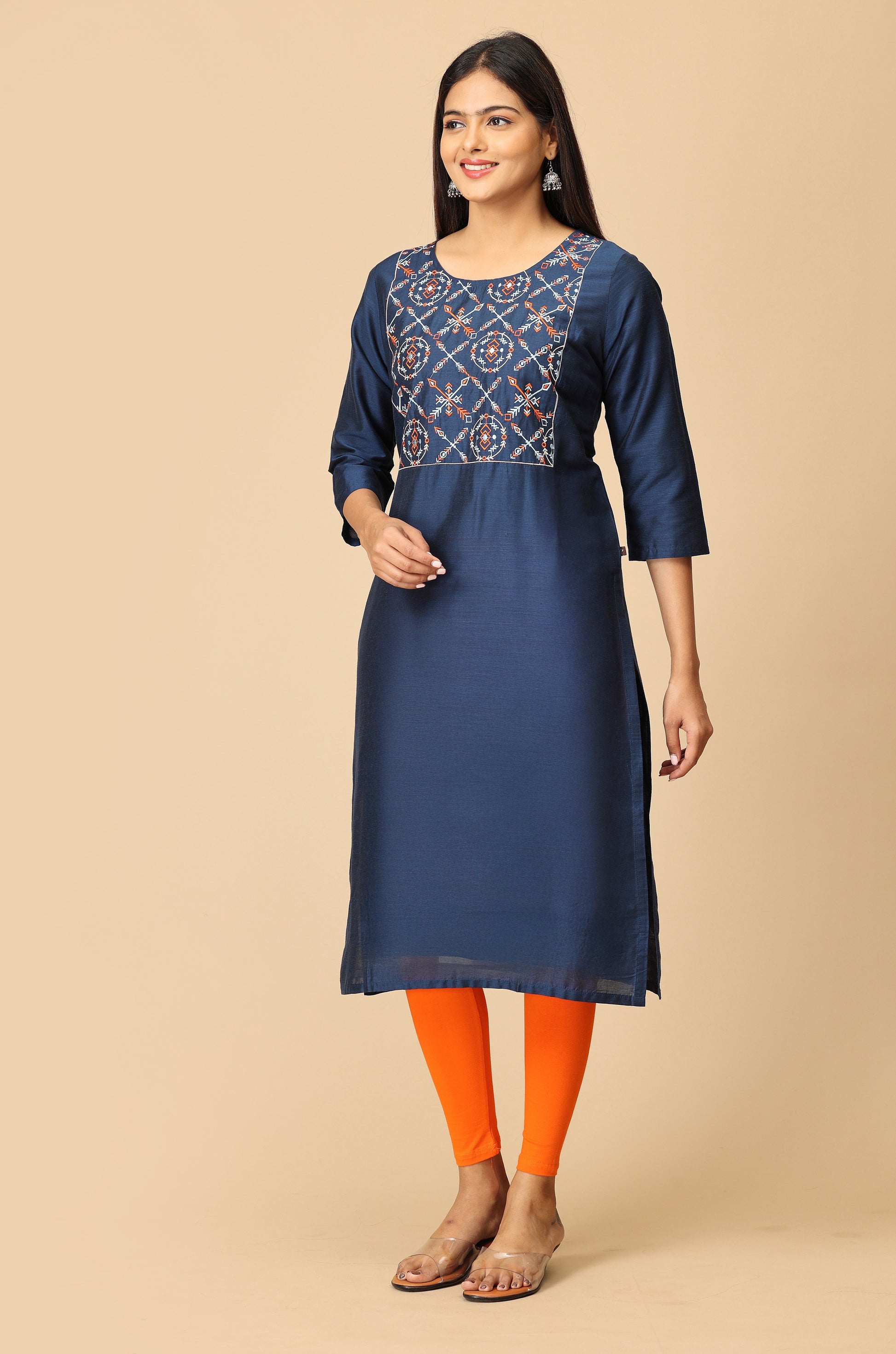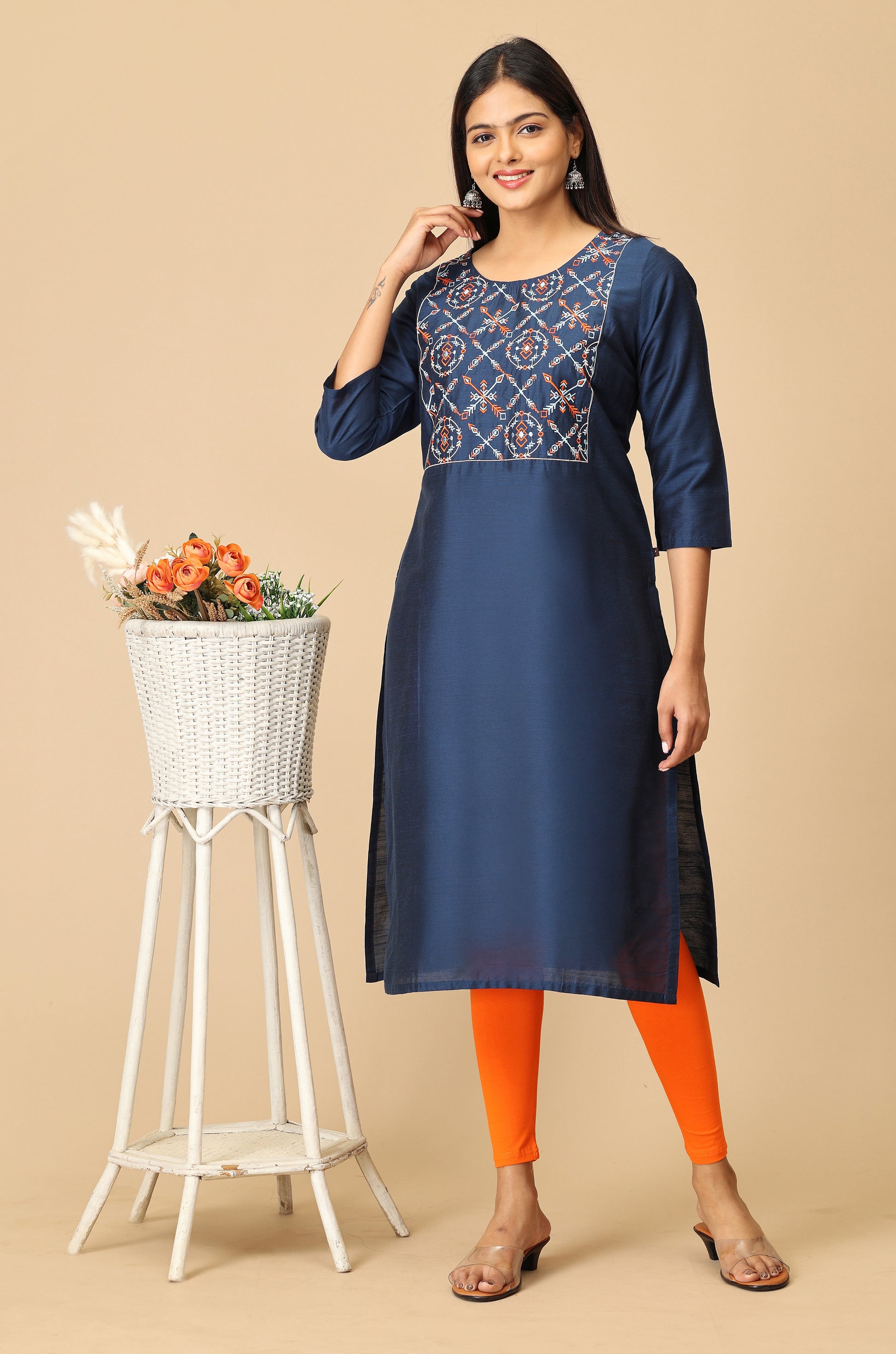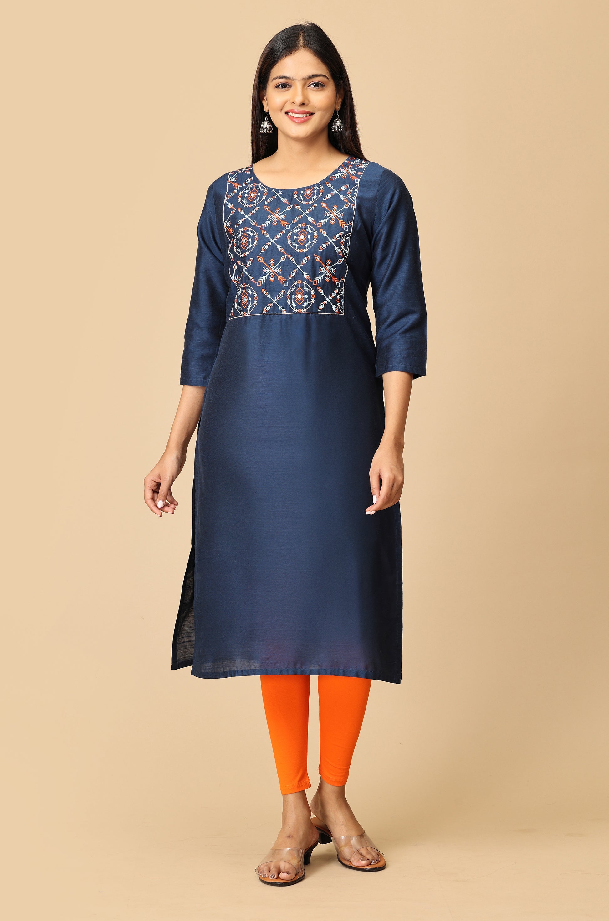 Navy Blue Multi-Color Embroidery Kurti