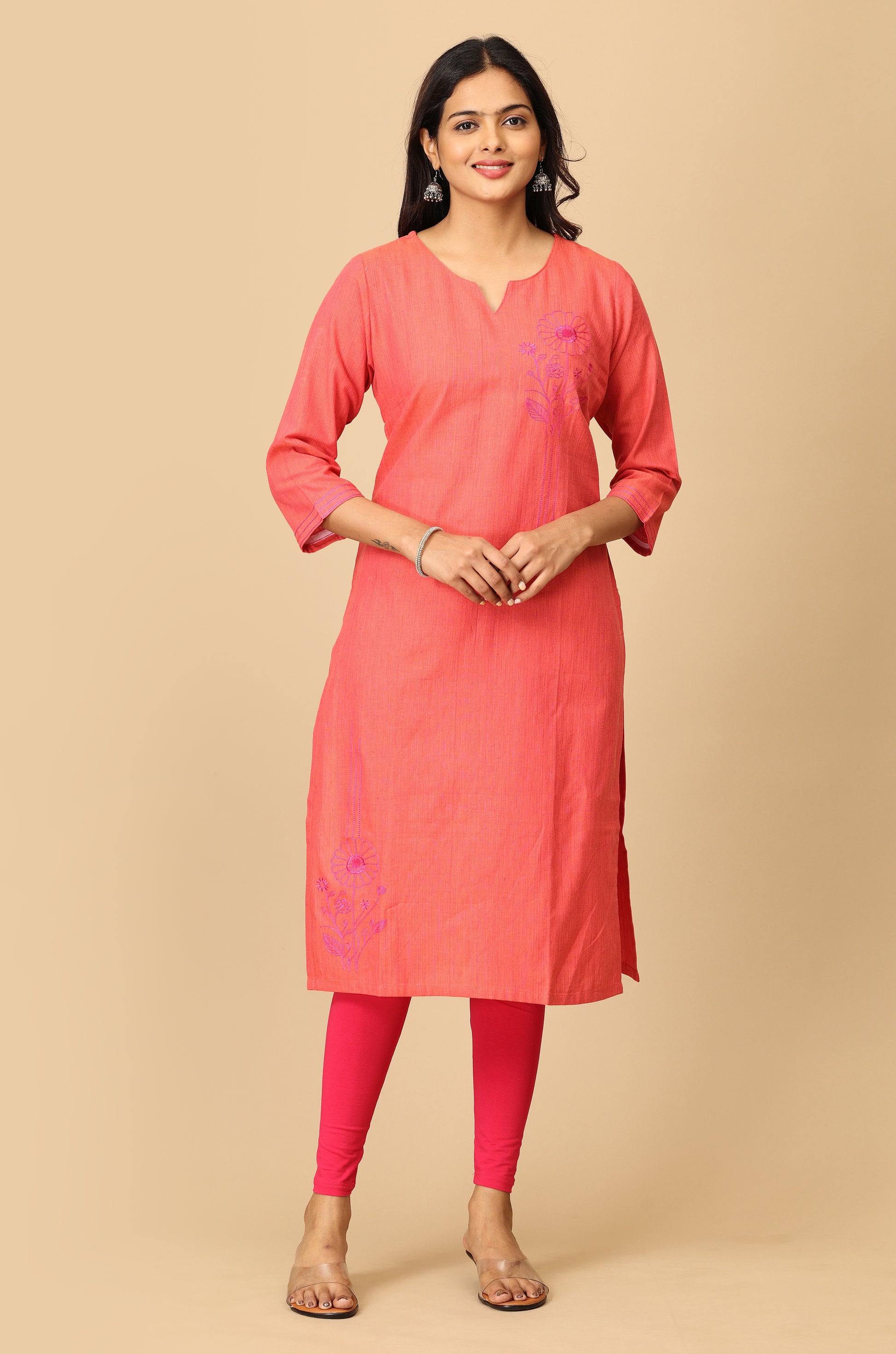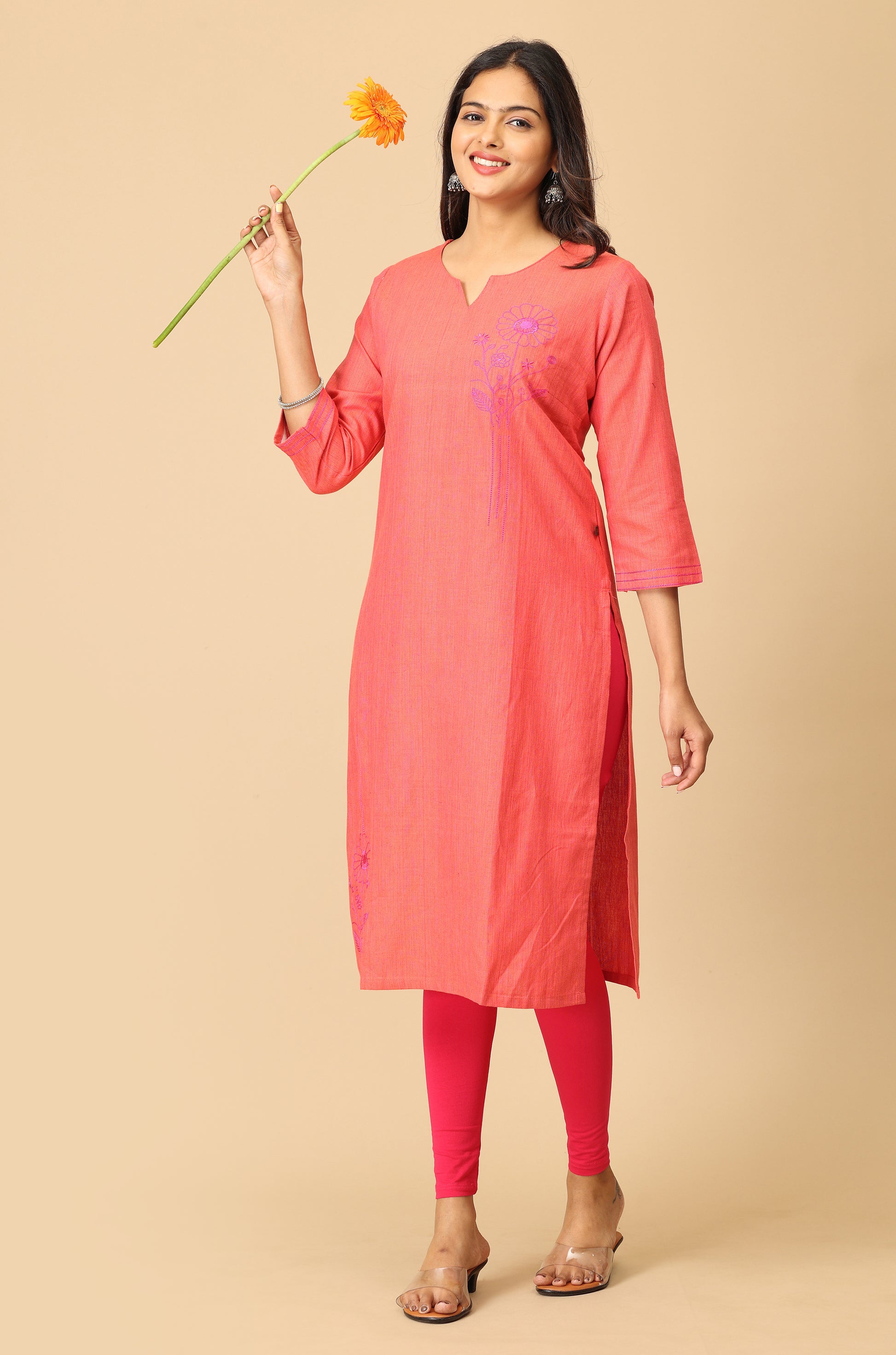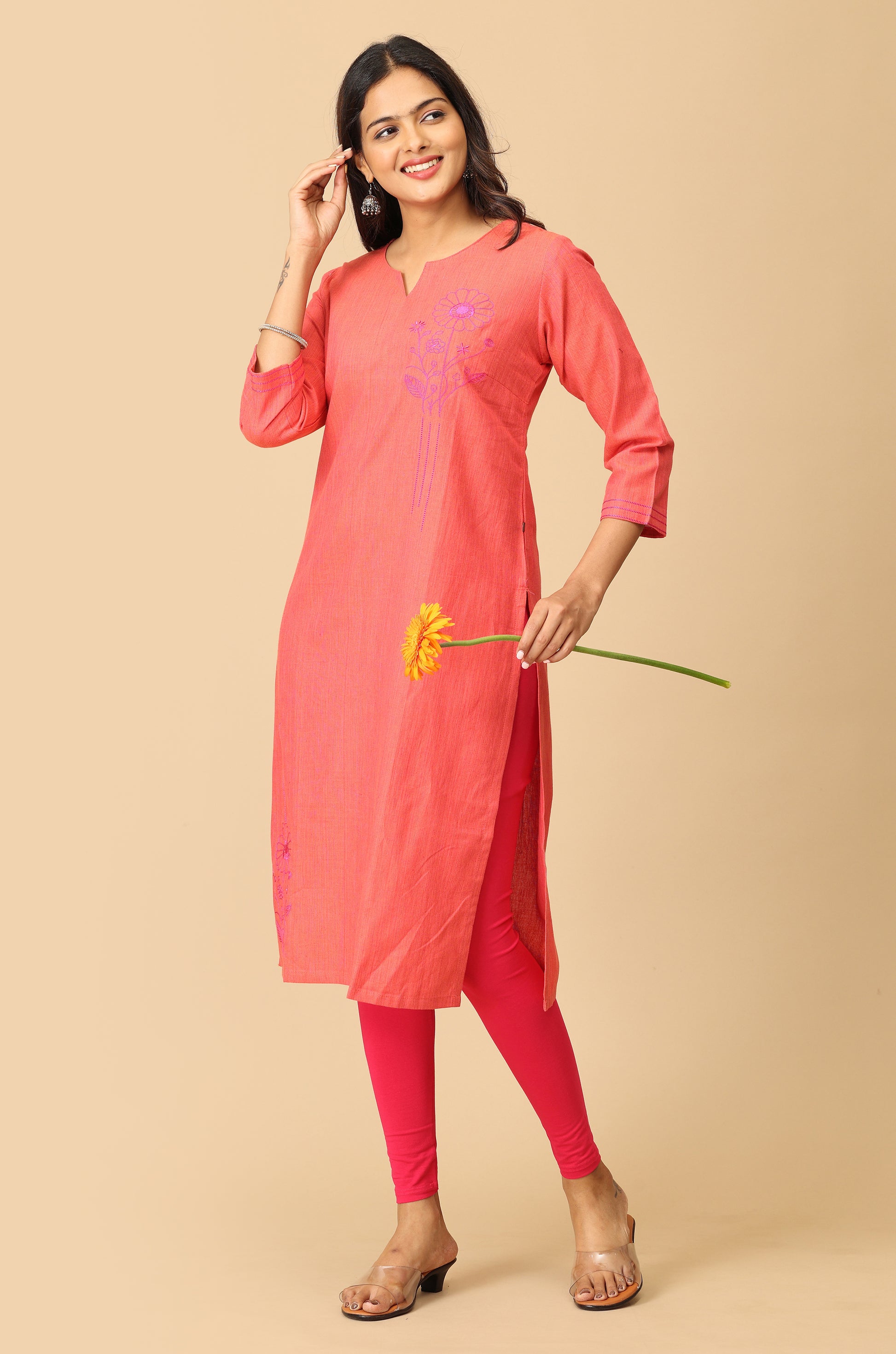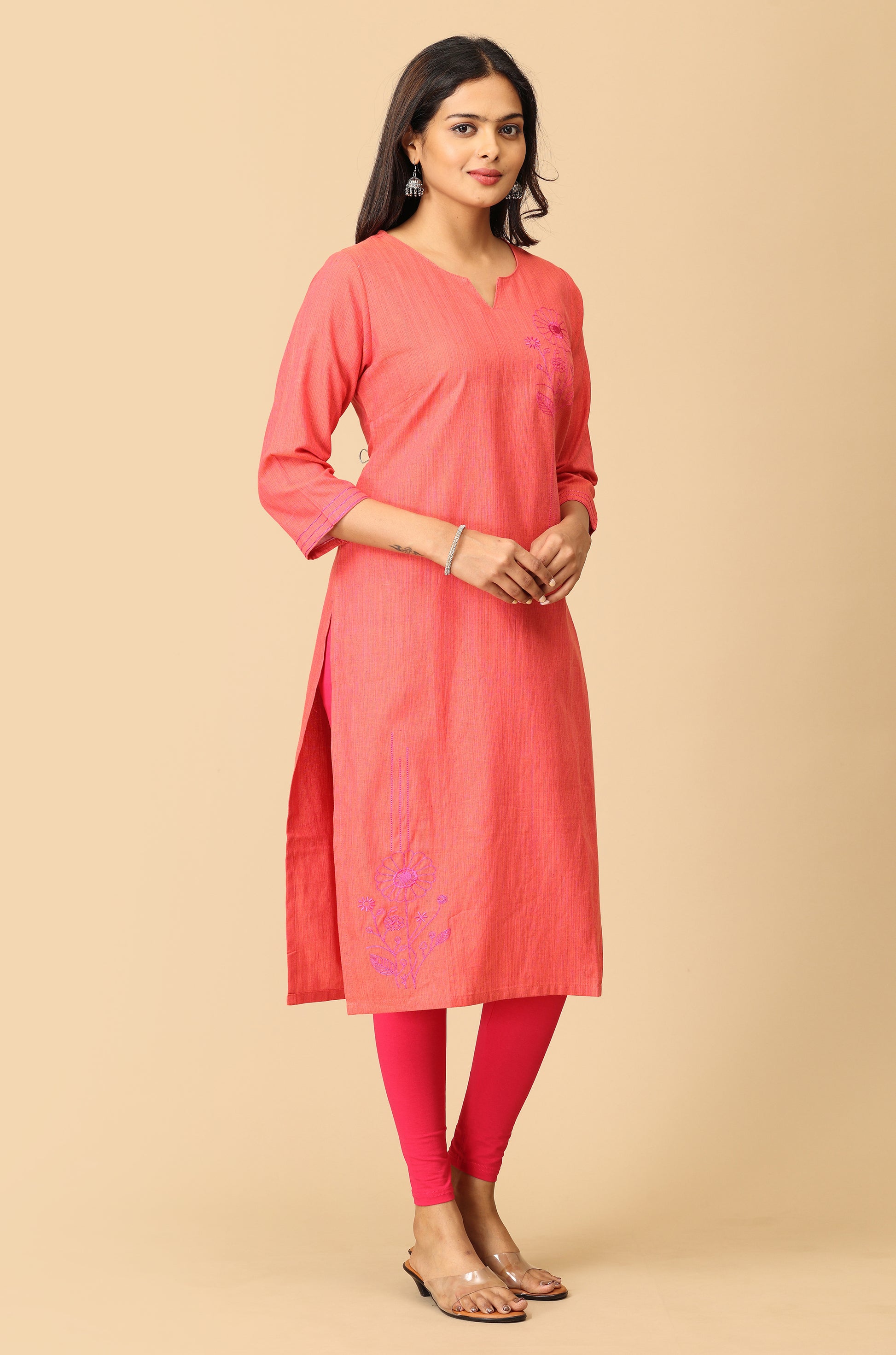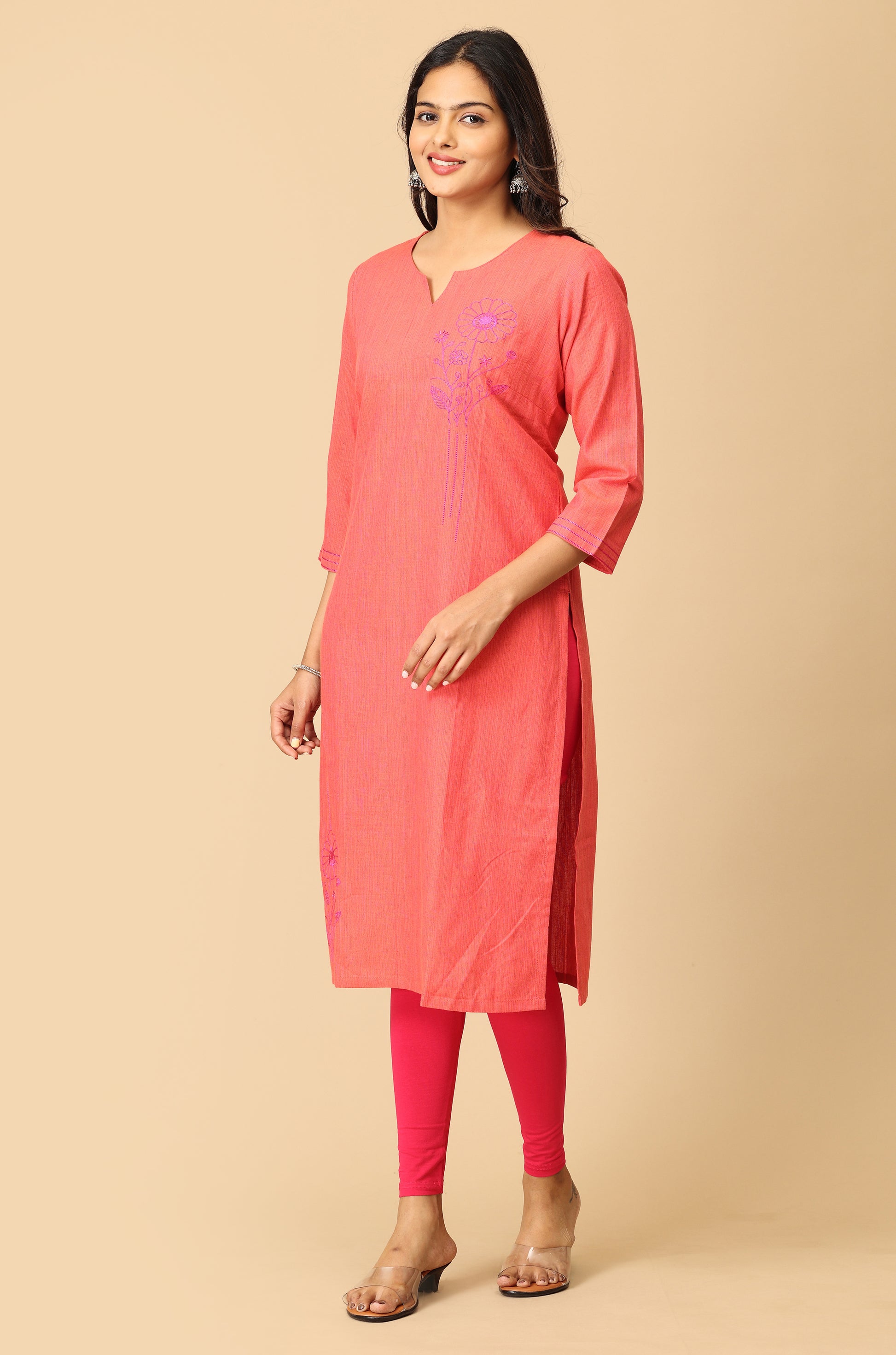 Peach Straight Side Embroidery