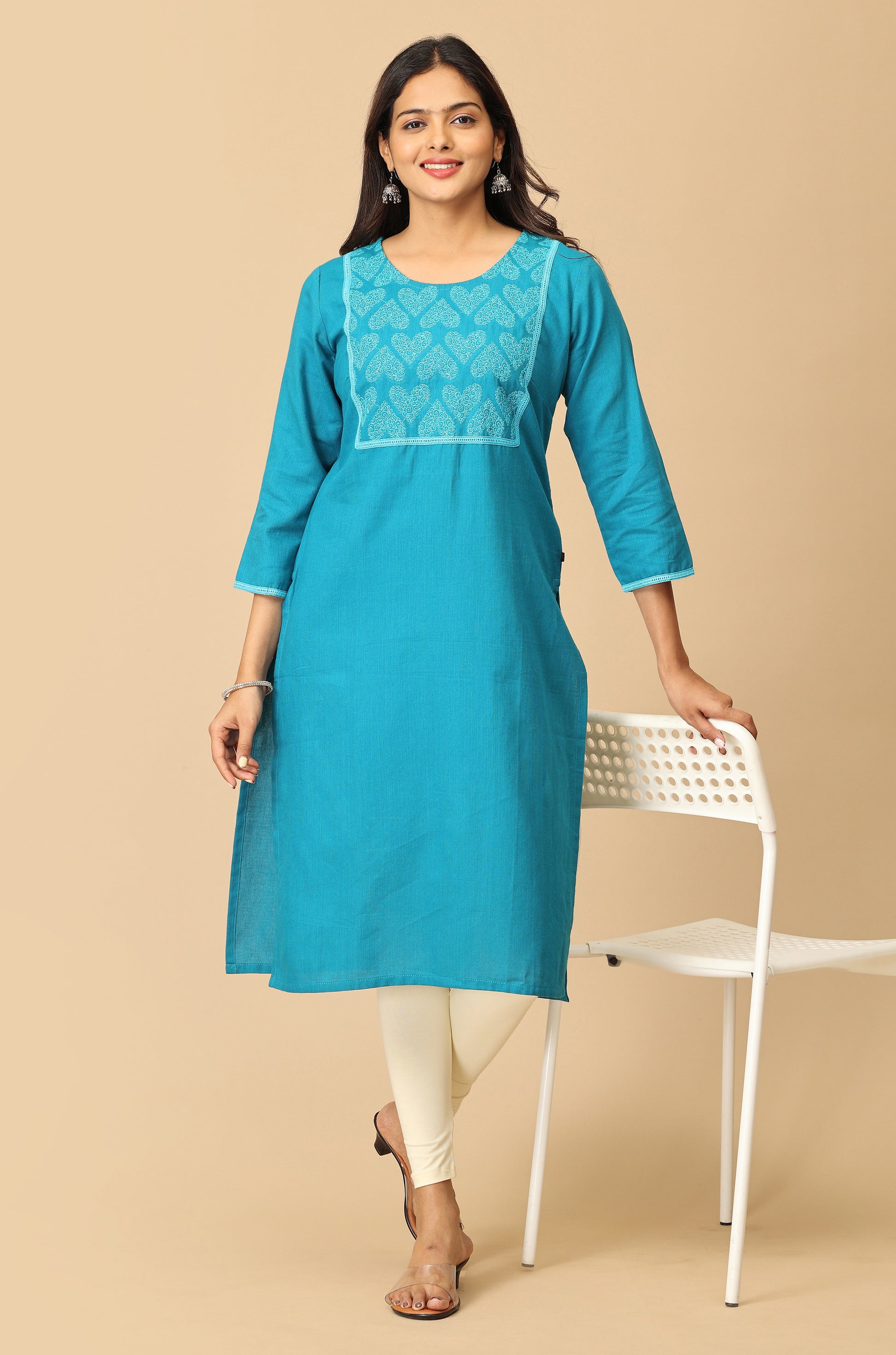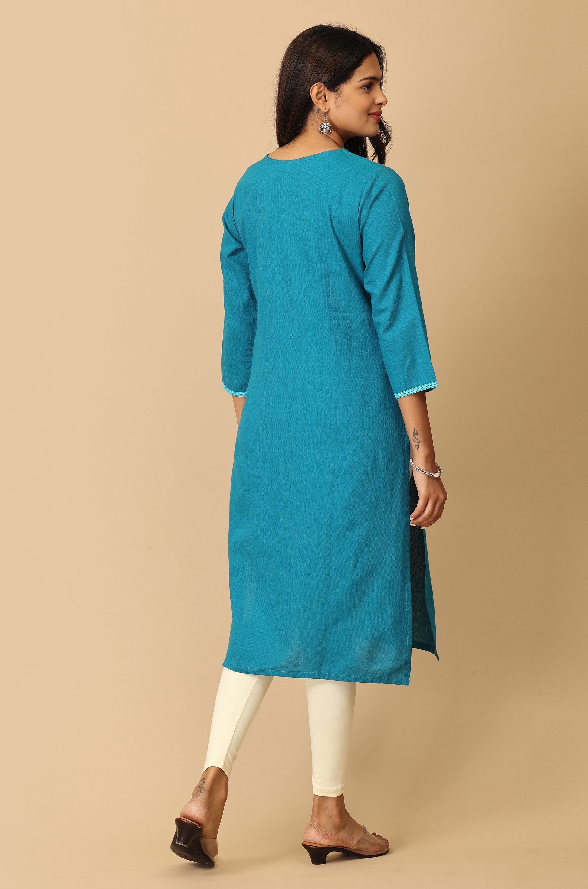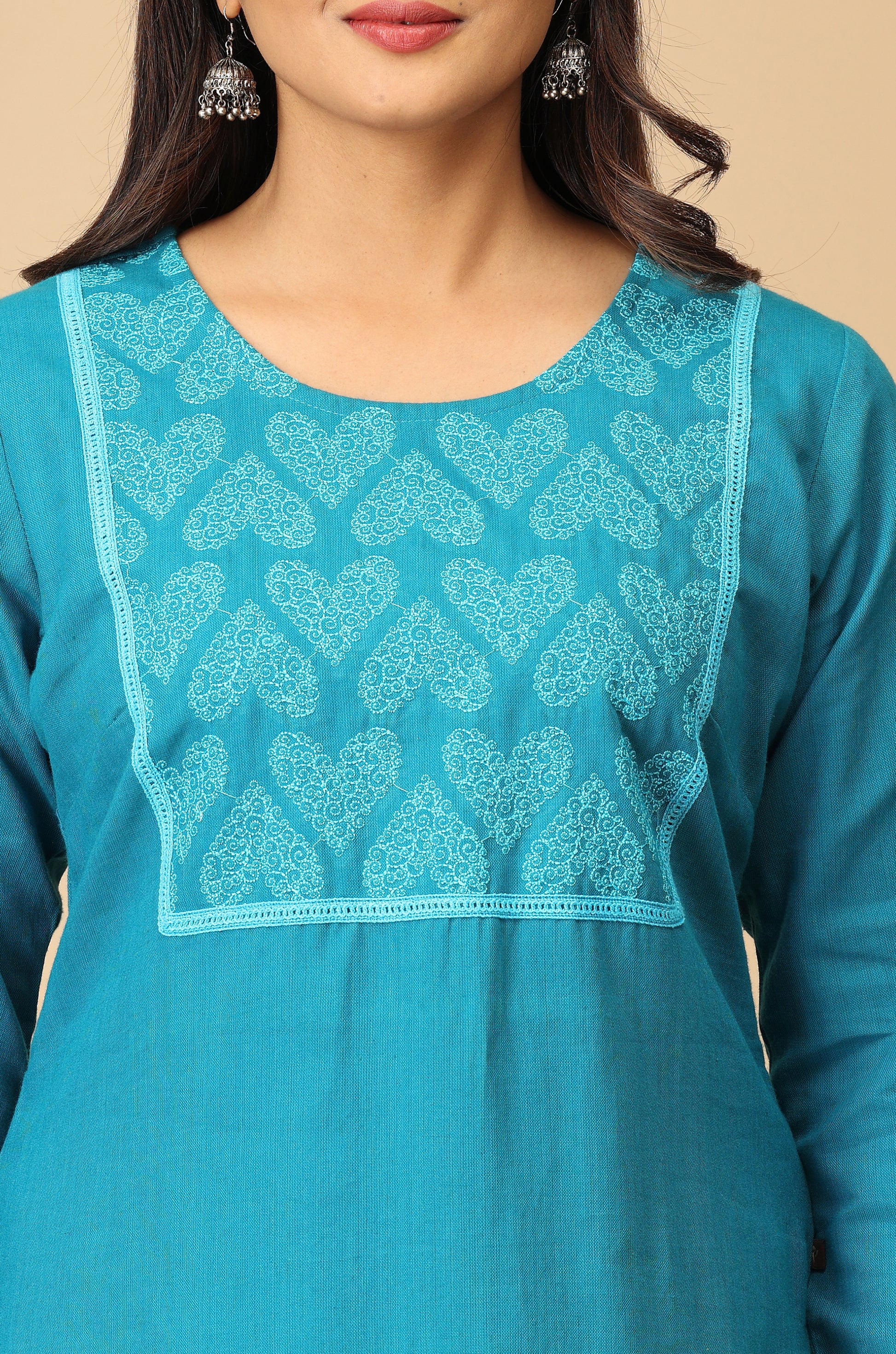 Steel Blue Embroidery with Lace Kurti