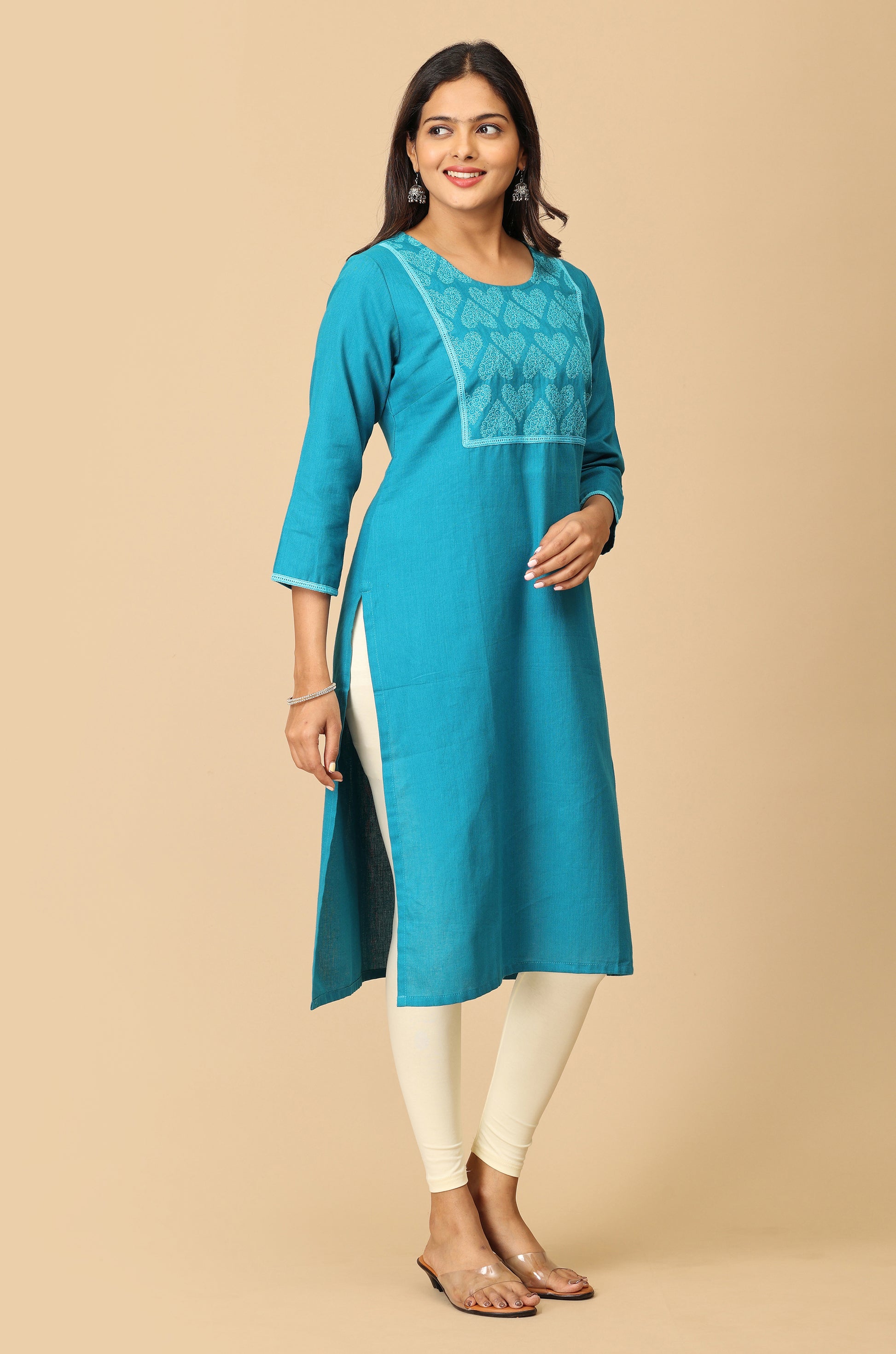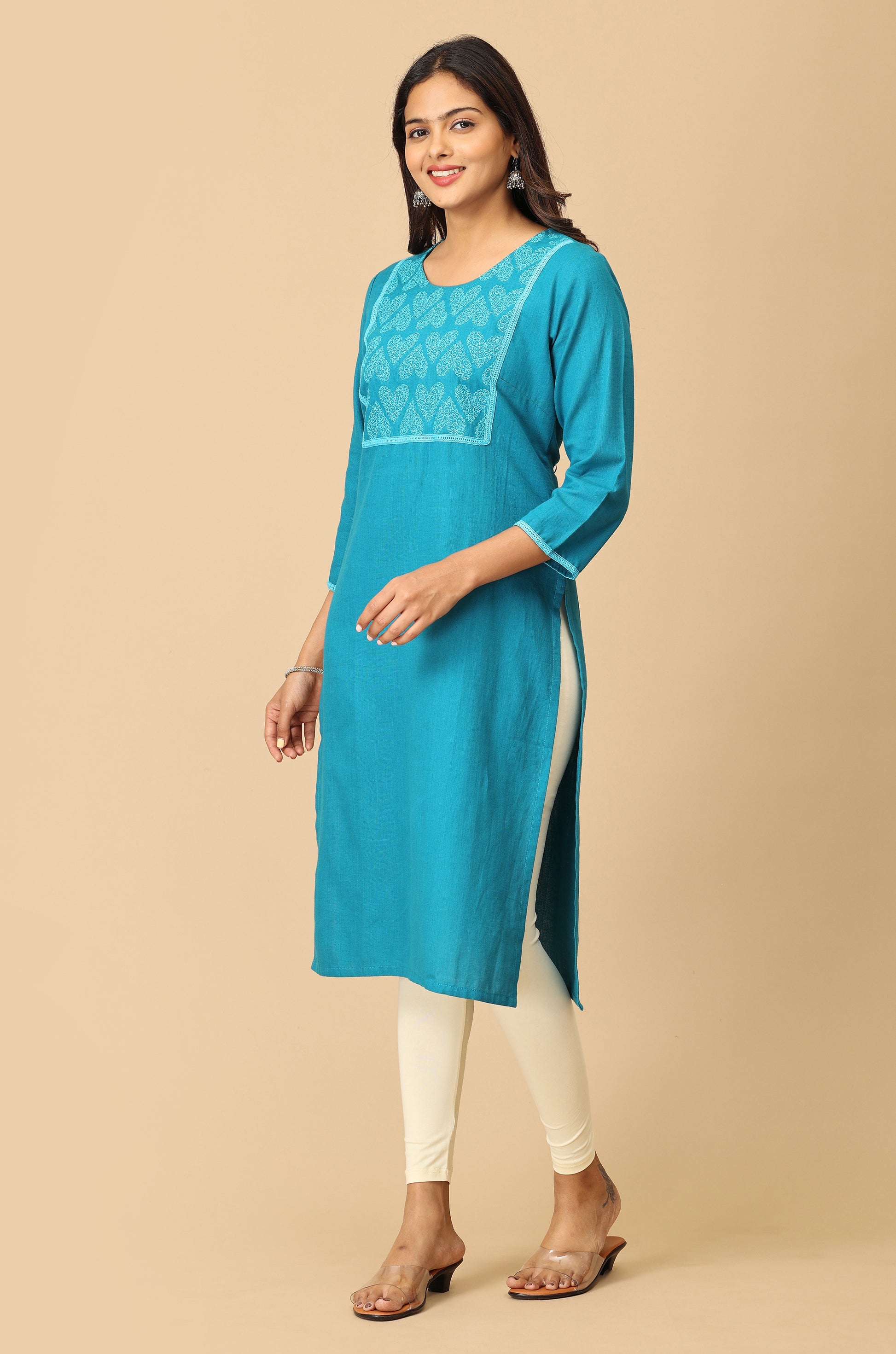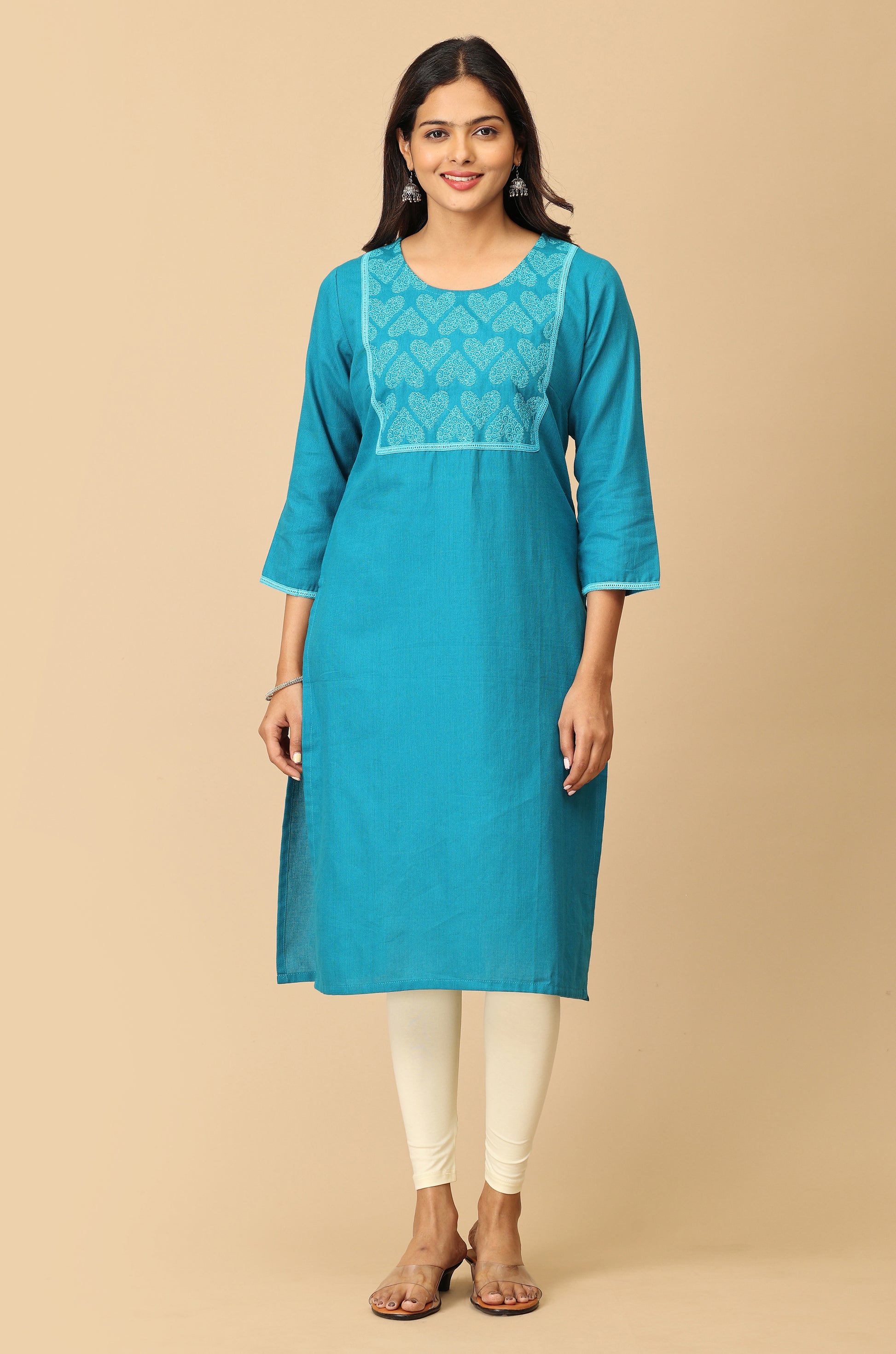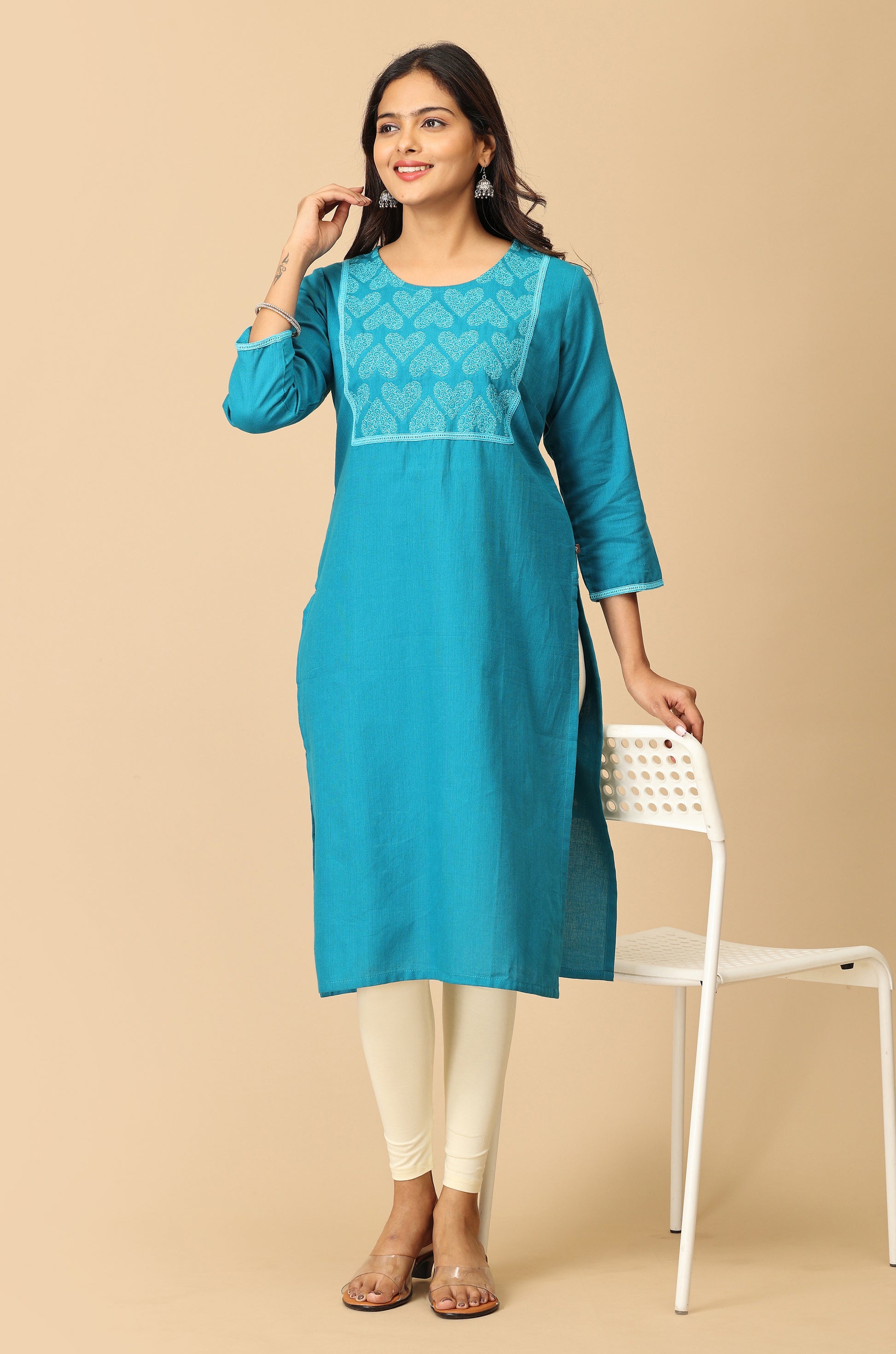 Steel Blue Embroidery with Lace Kurti