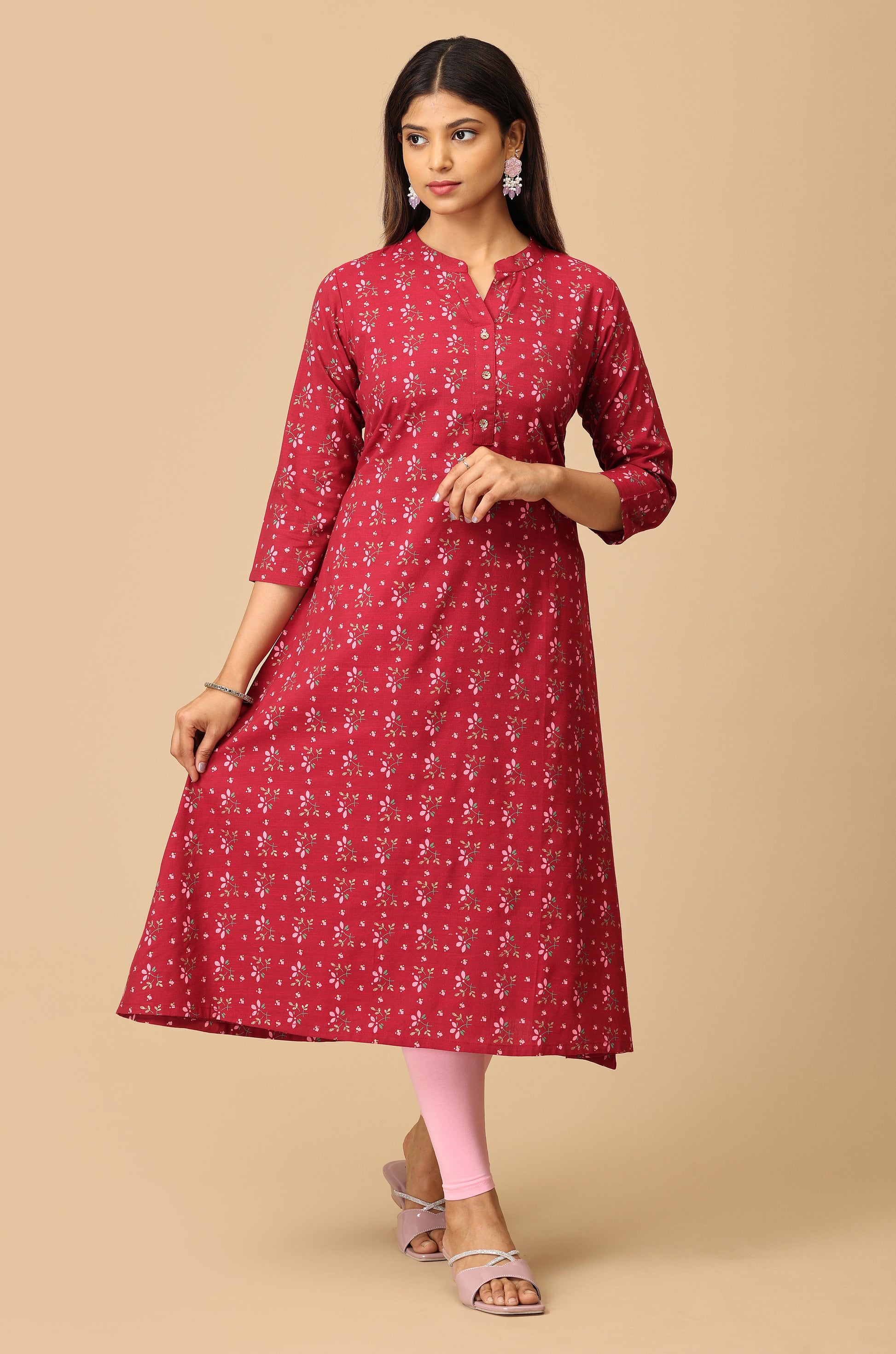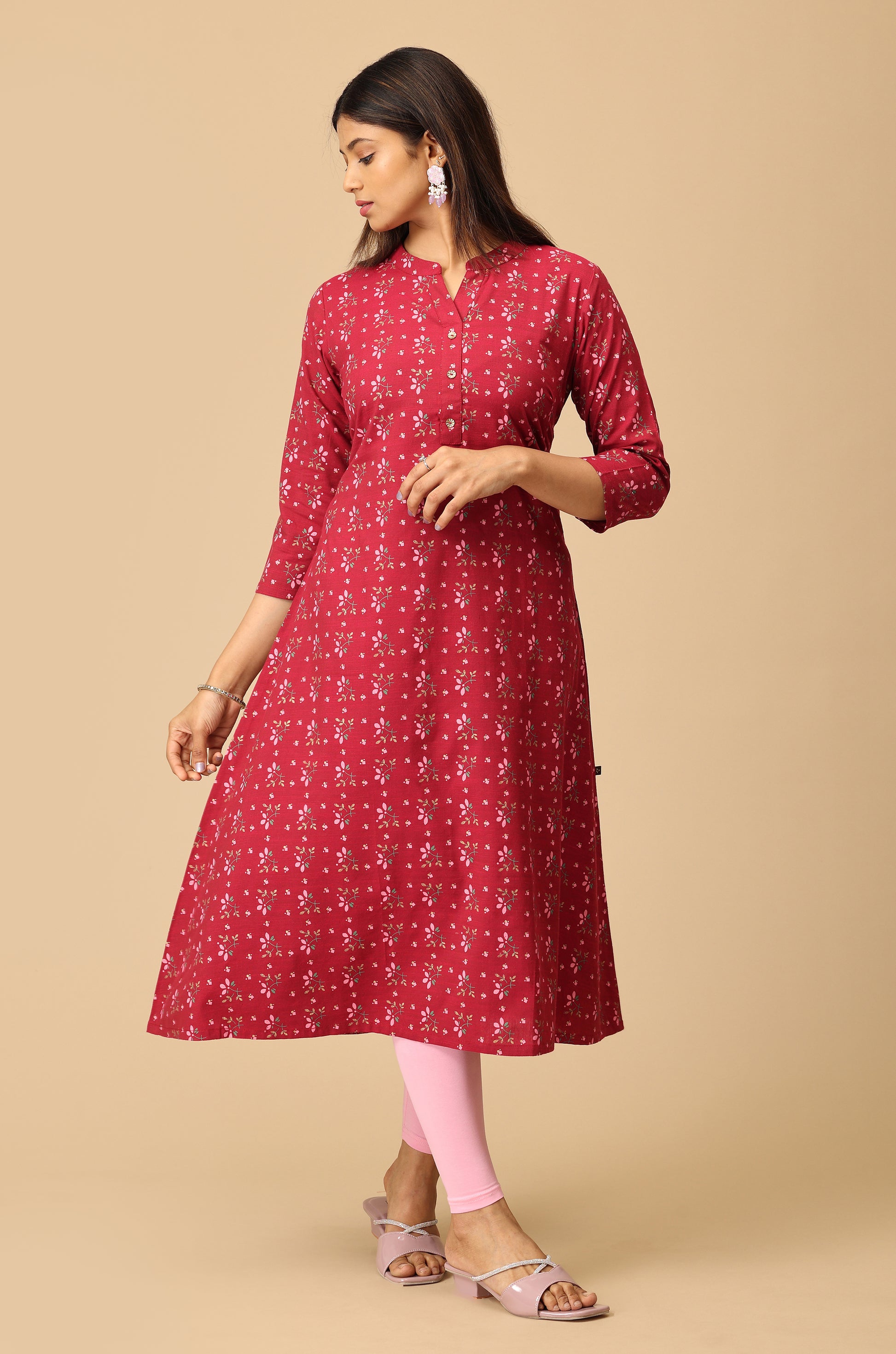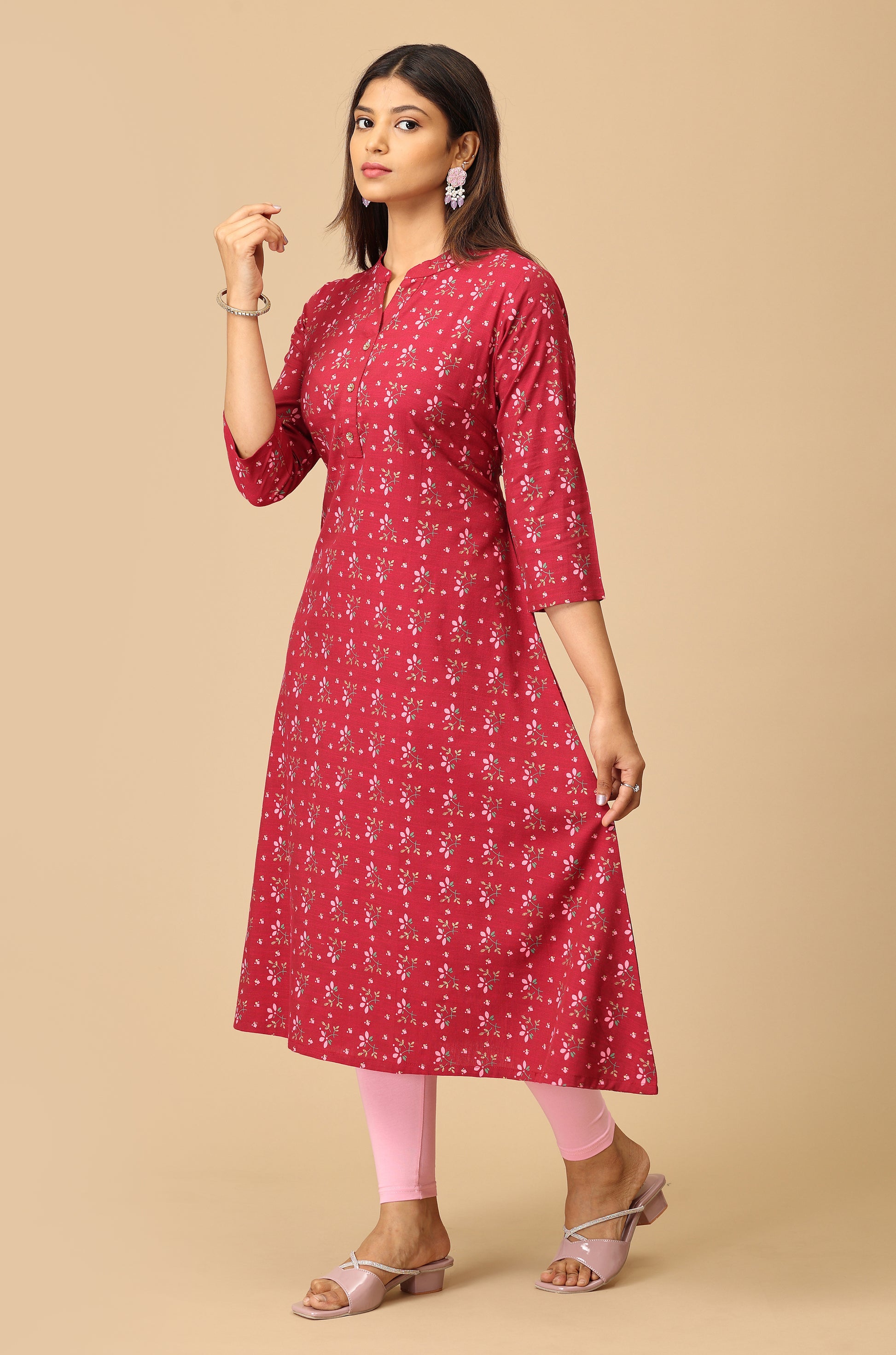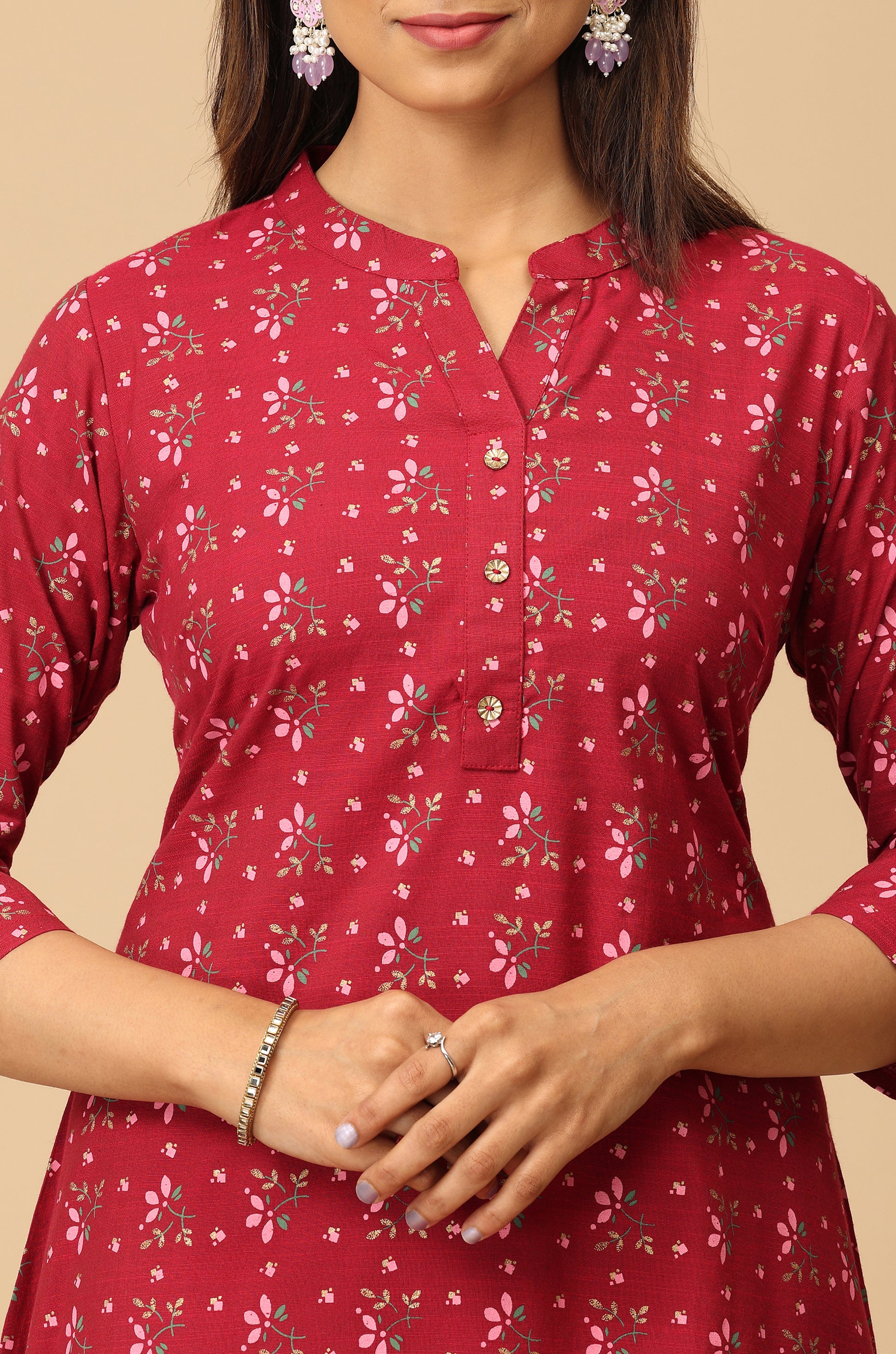 Dark Fuchsia Rayon Slub A Line Kurti