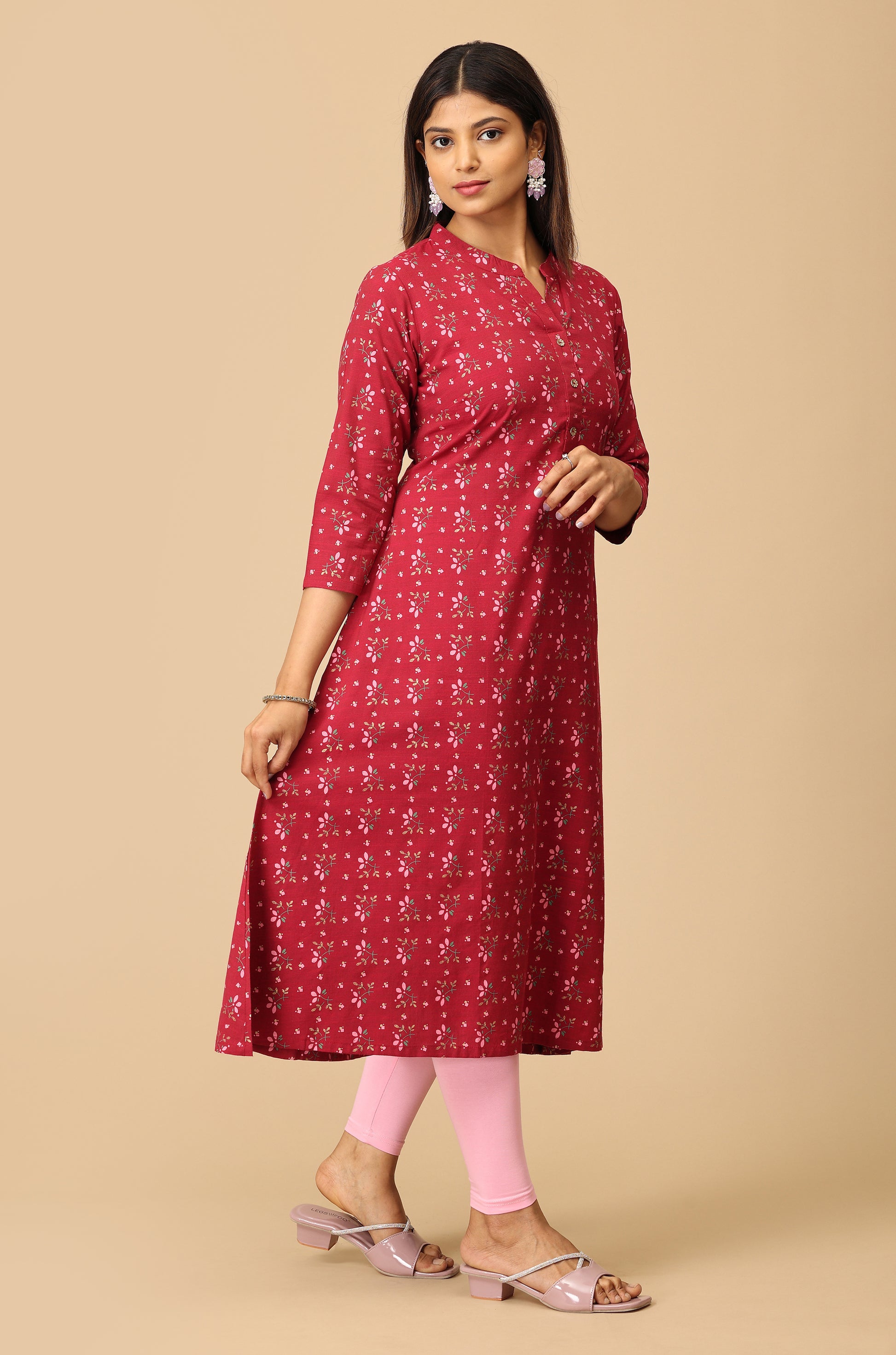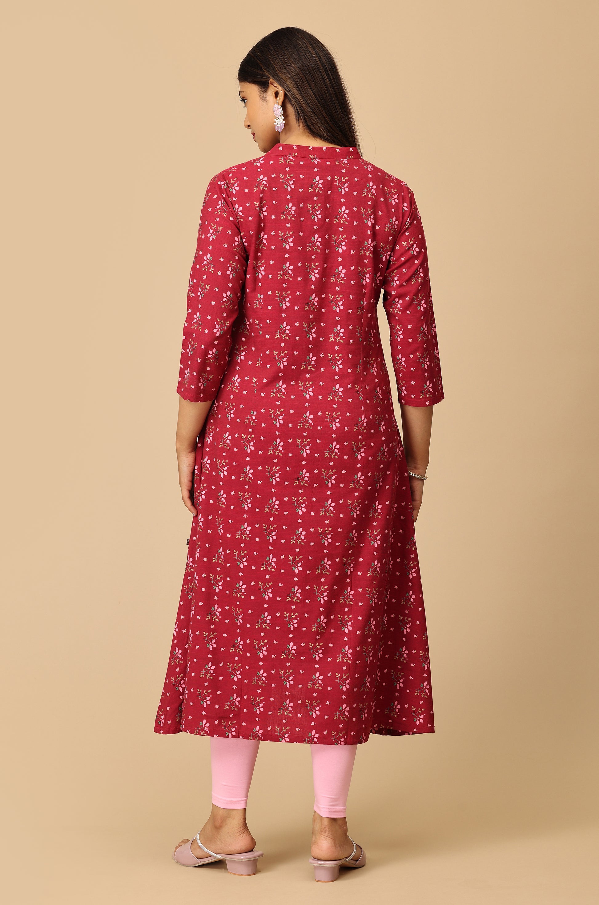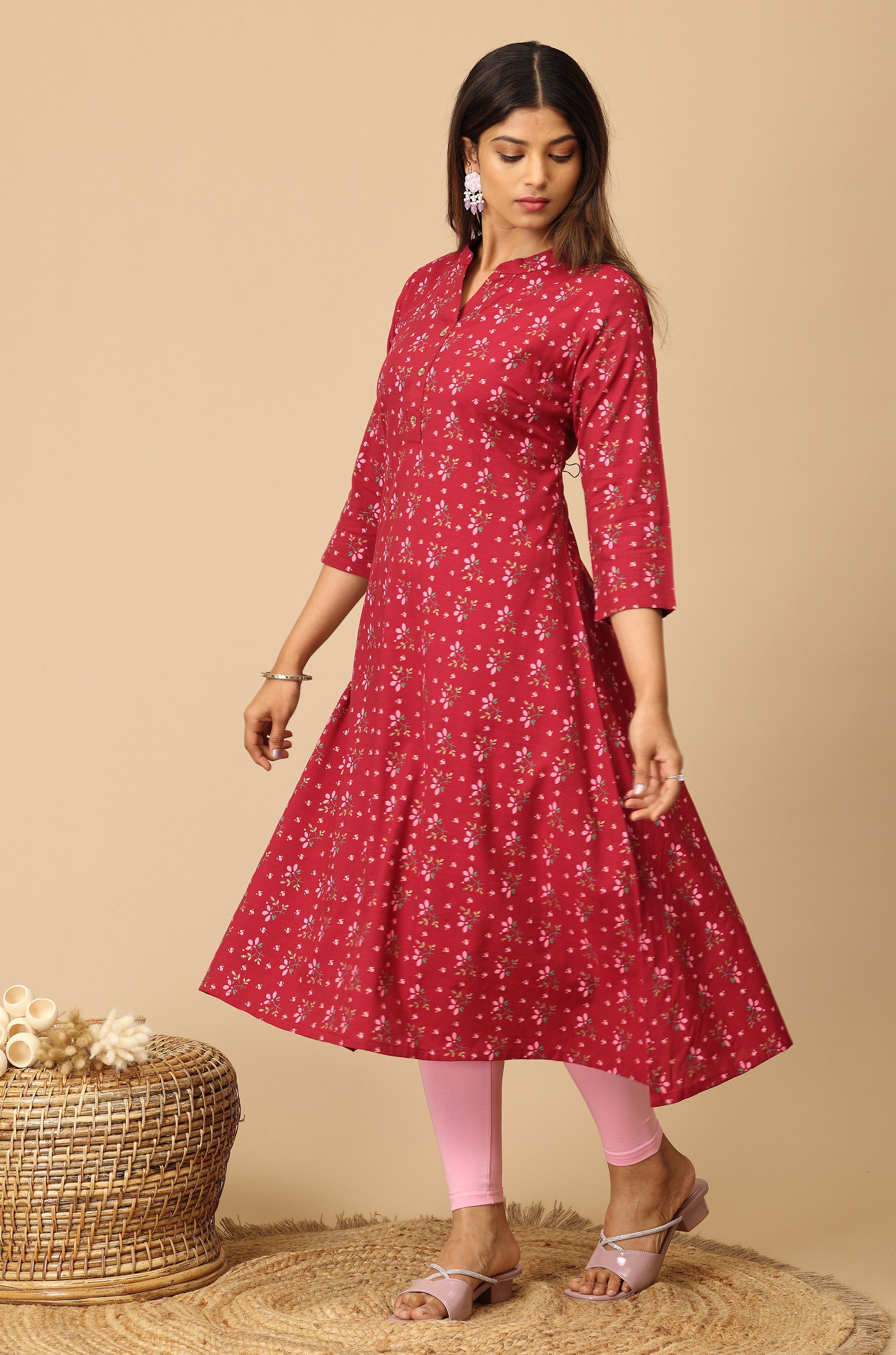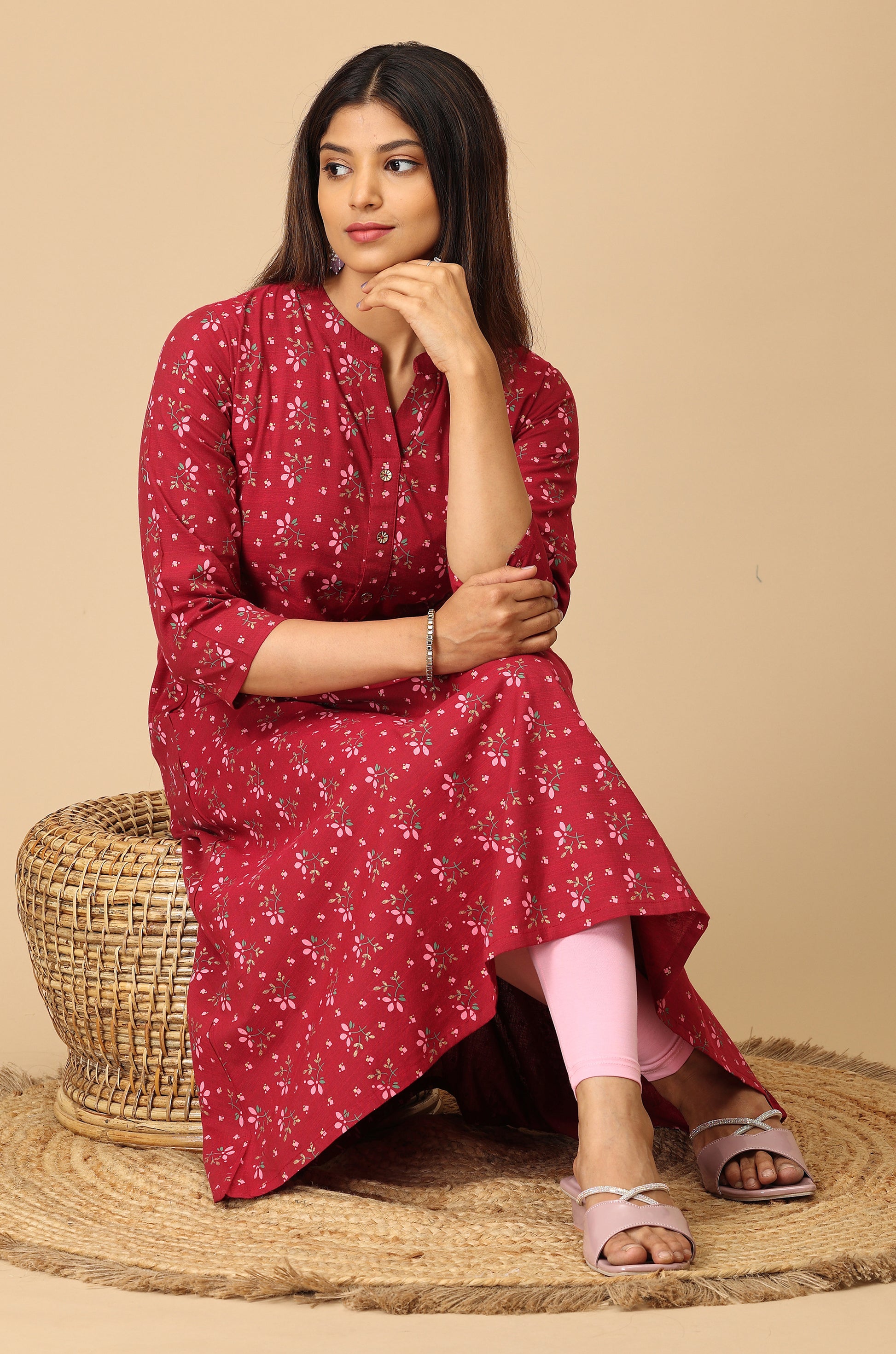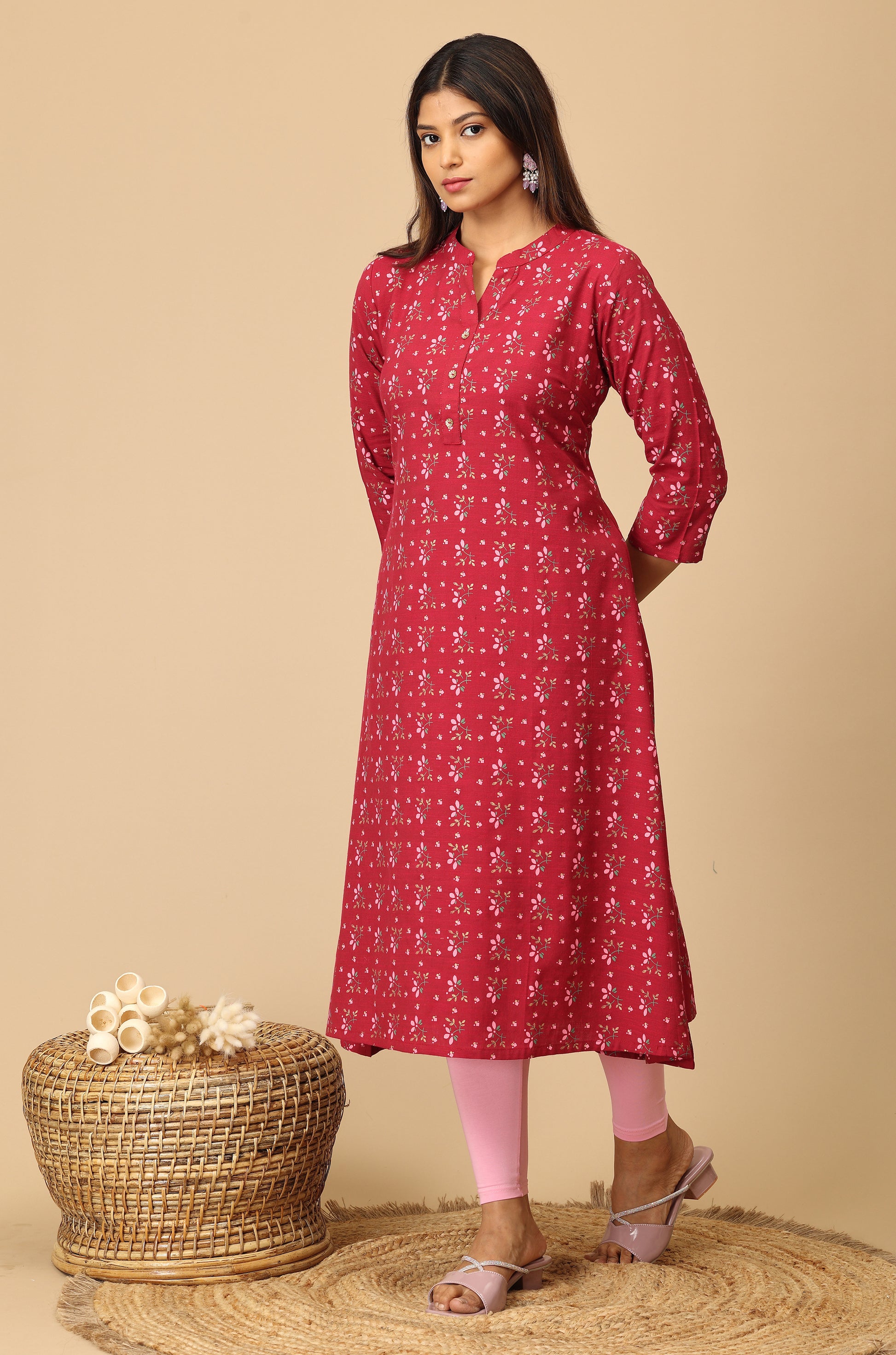 Dark Fuchsia Rayon Slub A Line Kurti