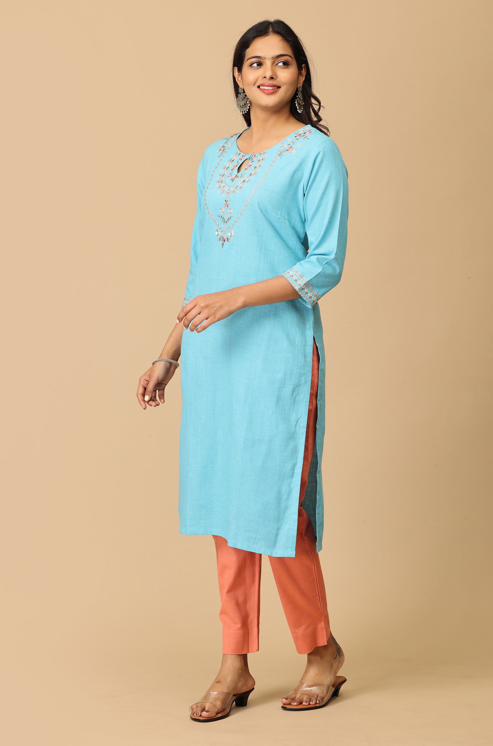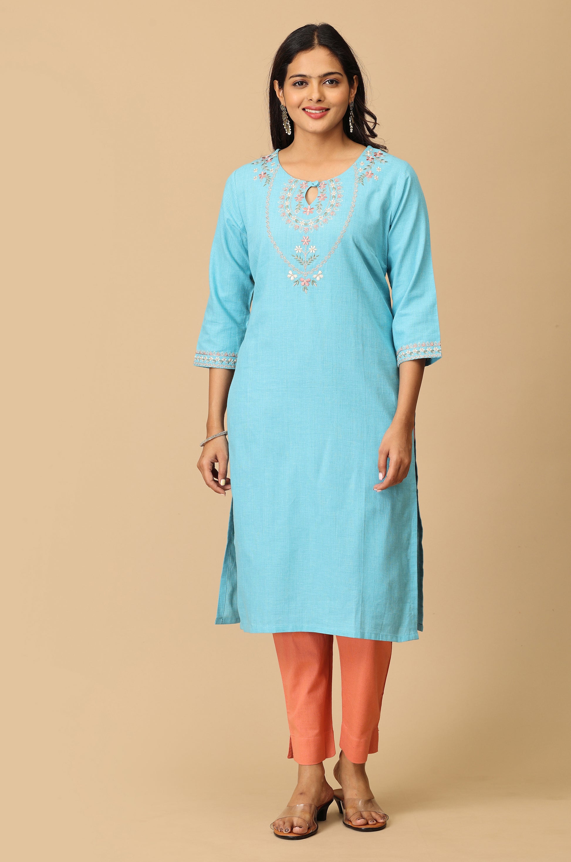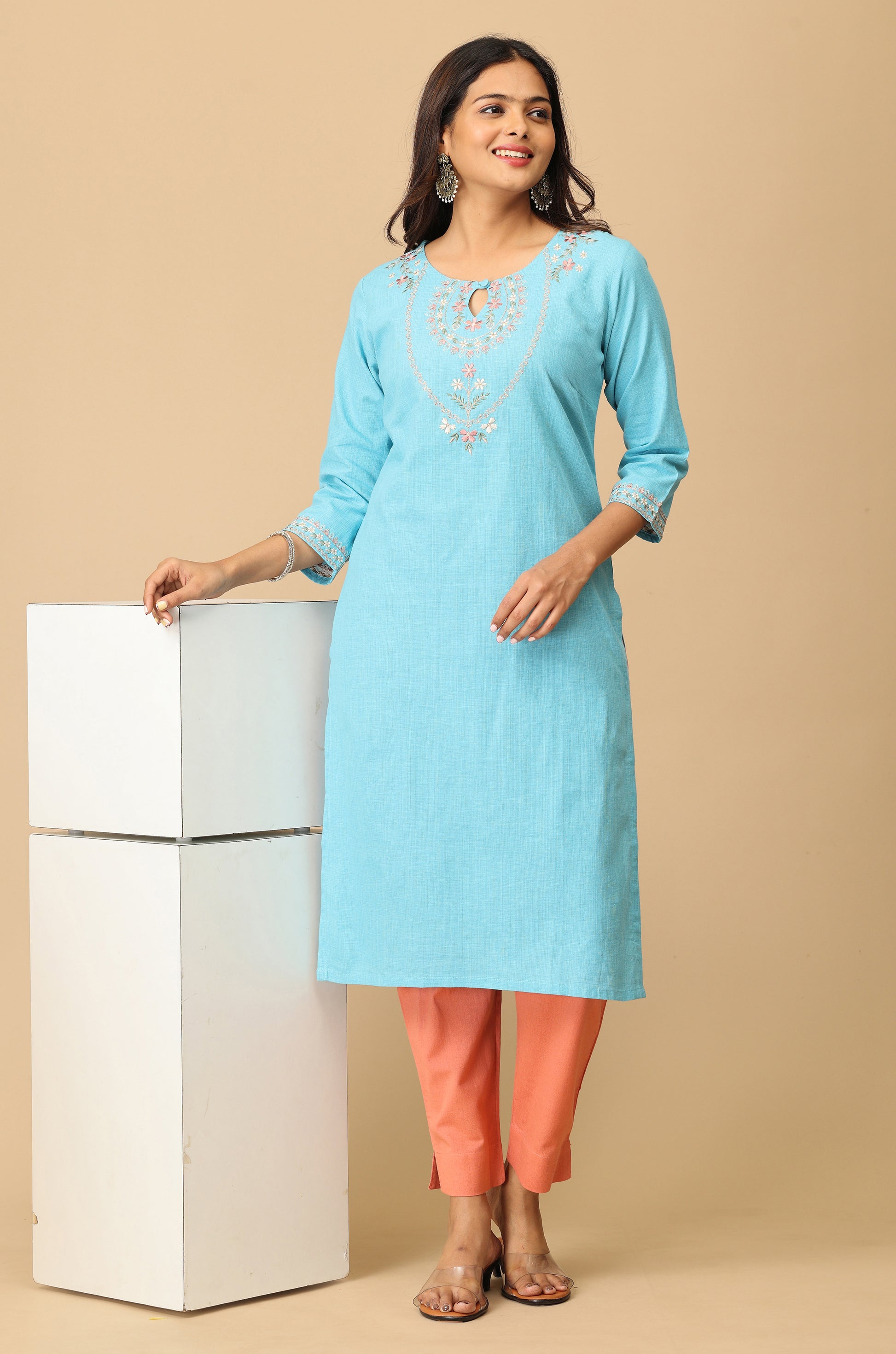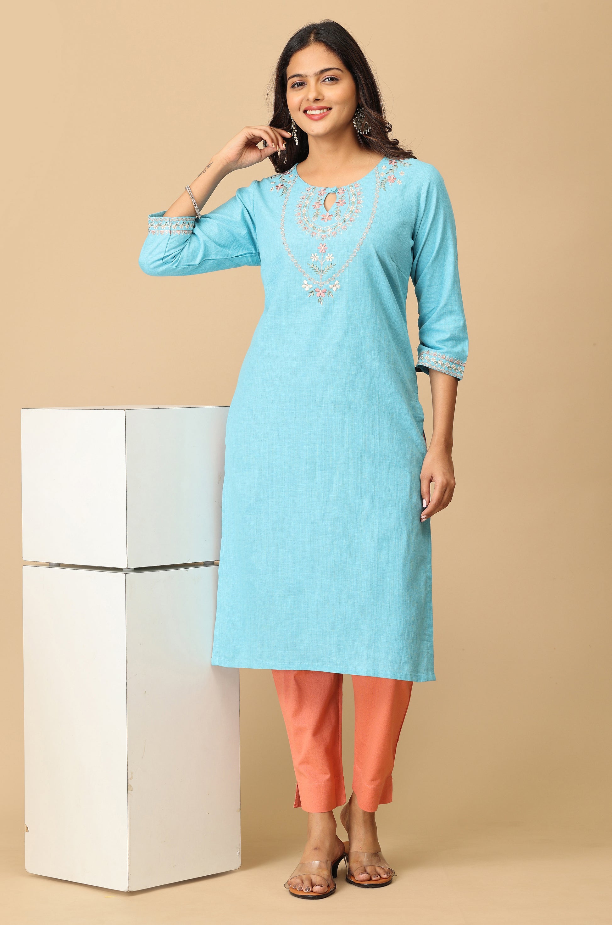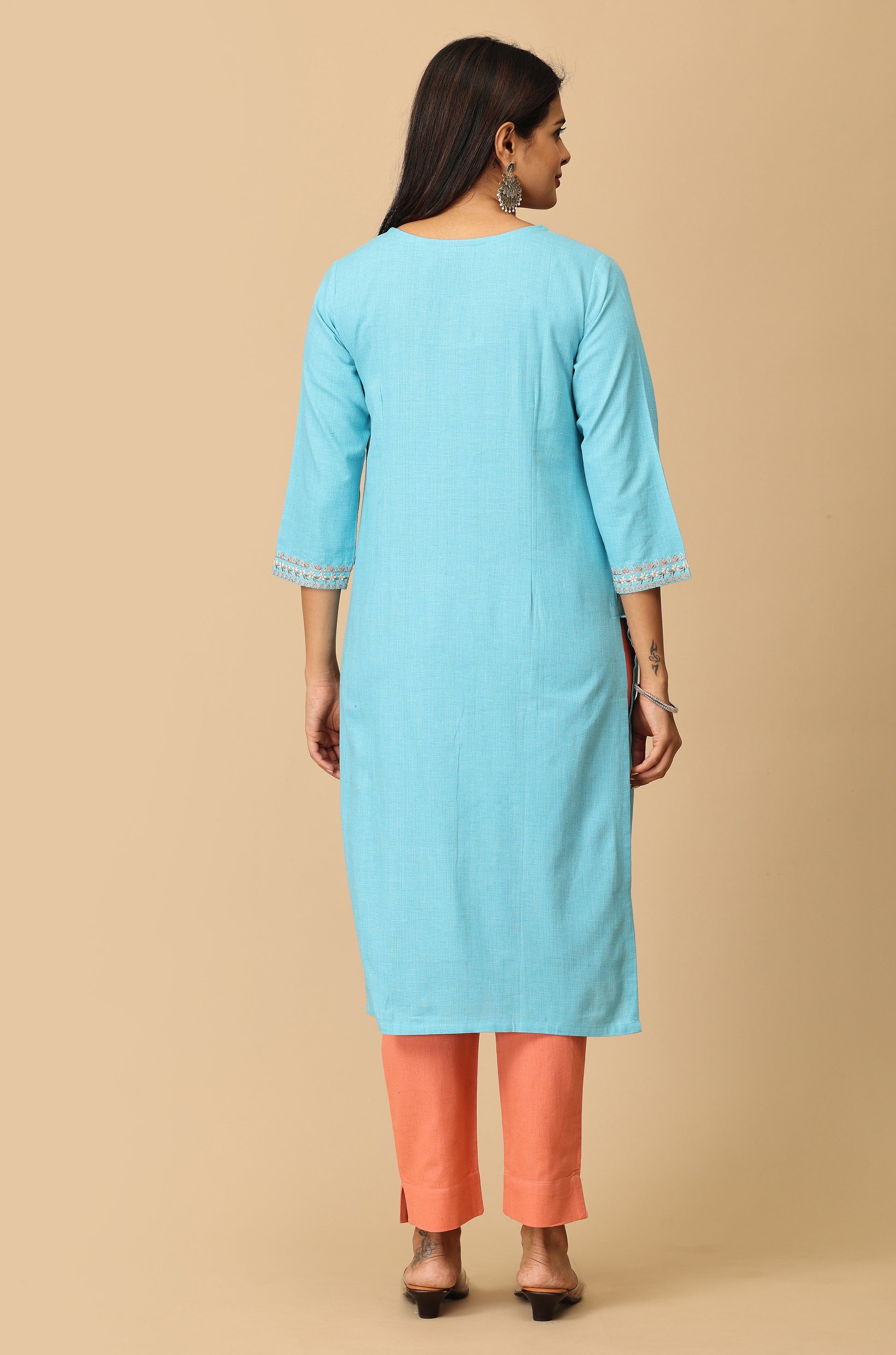 Sky Blue Khadi Embroidery Kurti